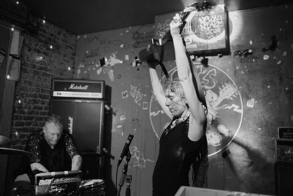 Veel soundcheck heeft het geroutineerde Italiaanse duo OvO niet nodig. Slagwerker Bruno Dorella en bassiste / zangeres Stefania Pedretti spelen sinds het begin van deze eeuw samen. Ze kennen elkaar door en door, weten met een glimlach of knikje wat de ander wil en dat was aan hun fascinerende set ook goed te merken. Met het meest recente album Ignoto (2022, Artofffact) onder de dreadlocks gaf het duo een uitstekend concert. Voor ons, het publiek, was het ook duidelijk dat beiden zich heel erg thuis voelden in dat punkhol op de hoek in Kortrijk.