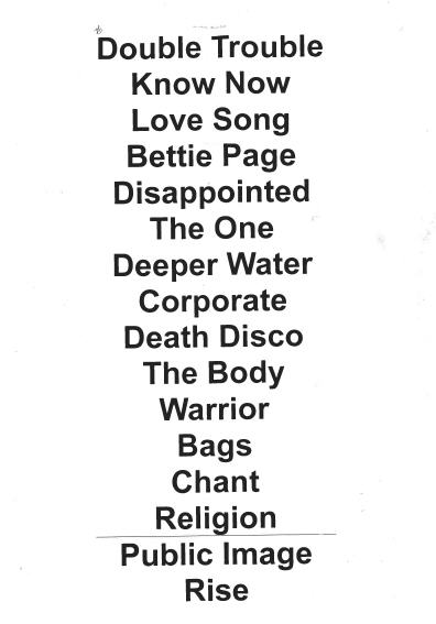 Er volgt een uitstekende set met als hoogtepunten ‘Warrior’ en ‘Religion’ waarbij we letterlijk weggeblazen worden door de basklanken…. De Trix davert terwijl Lydon zingt: Turn up the bass!