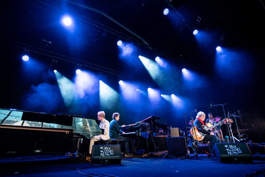 Nog meer mooie mensen verschenen op het podium bij de immer sympathieke Philip Caterine die van Jazz Middelheim carte blanche kreeg om een band samen te stellen. Hij nodigde ‘Two Pianos’ uit met daaraan evenveel pianisten en stond op het podium met de Nederlandse Bert van den Brink en de Italiaanse Nicola Andrioli. Net zoals een tijdje geleden in Flagey nam ook nu Angelo Moustapha plaats aan de drums. Niet zichtbaar geremd door de opgelegde tijdrestricties speelde Catherine een door het publiek erg gesmaakte set van ruim anderhalf uur.