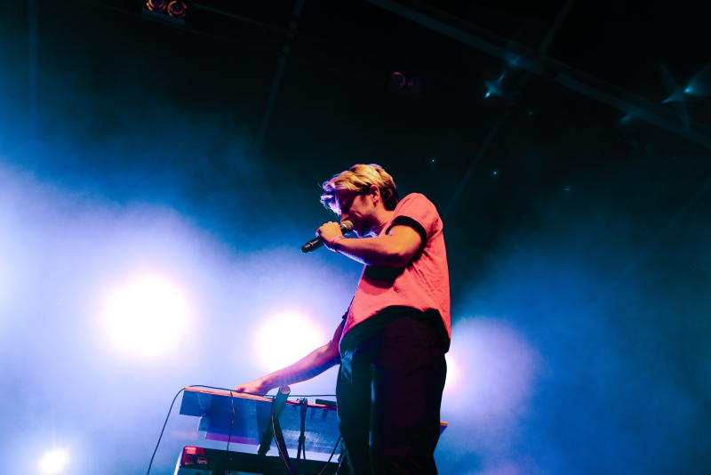 Het voorprogramma schoot ongelofelijk raak. Aurel kreeg naast het mateloos enthousiasme van het publiek ook ons geïnteresseerd oor. Omgeven door twee synthesizers, een microfoon, een drumpad en een gitaar, mengde hij samples en riffs van her en der tot een fascinerend geheel. Ondanks de vele, simultane loops klonken de nummers zeer gebalanceerd. De synths, de dromerige atmosfeer en het gebrek aan andere bandleden deed eerst de indruk ontstaan dat het zou gaan om een shoegaze/bedroom popartiest. Dit vooroordeel werd echter al na twee nummers volledig de grond in geboord door de heftige bassen en de uitgesproken drum. Die deed ons wat denken aan trap, eerder dan aan bedroompop.