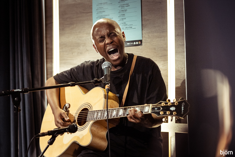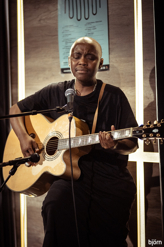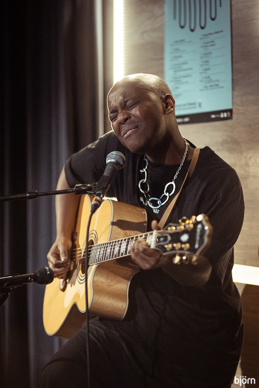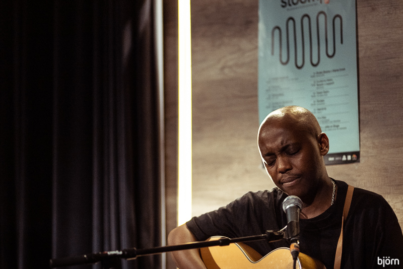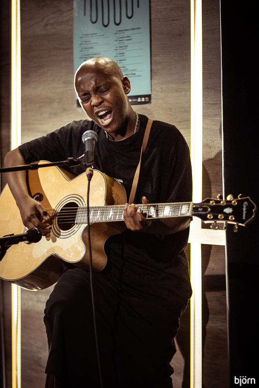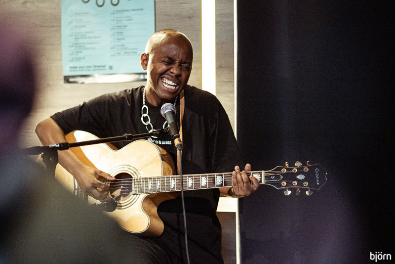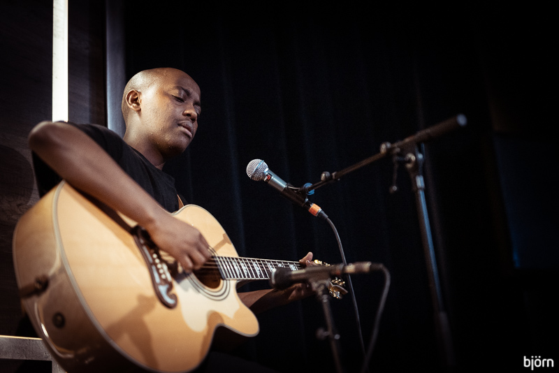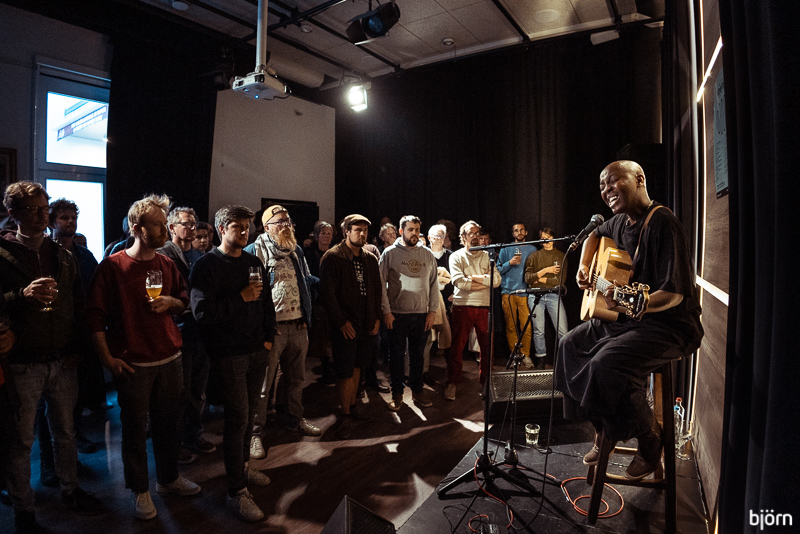 Hubert Tuyishime mocht de avond openen en deed dat, net zoals die keer in de N9 in Eeklo, op zeer indrukwekkende wijze. Met een ongelooflijk straffe stem, een sterke podium présence en ditto nummers maakt Hubert de toeschouwer meteen duidelijk dat dit geen muziek is voor doetjes. We herkennen nummers als No Denim, Vlaanderen (in het Nederlands) en Muschel. Wat er daarna gebracht wordt, heeft vaak (nog) geen titel maar hakt er even stevig in.