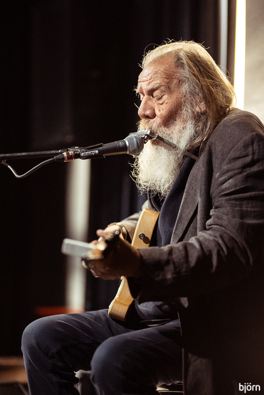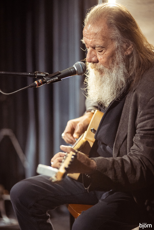 Roland Van Campenhout introduceren zou een beetje onnozel zijn en dat gaan we hier ook niet doen. Maar wat was het fijn om hem nog eens van zo dichtbij bezig te kunnen zien. Zonder band enkel met een elektrische gitaar, af en toe een mondharmonica en wat effectpedalen.