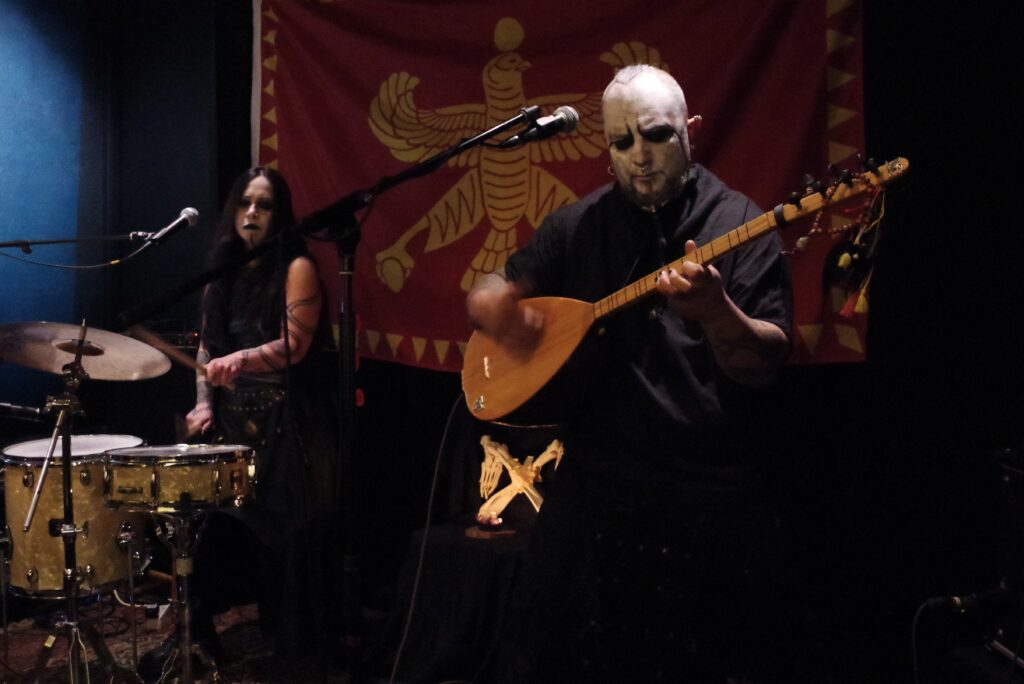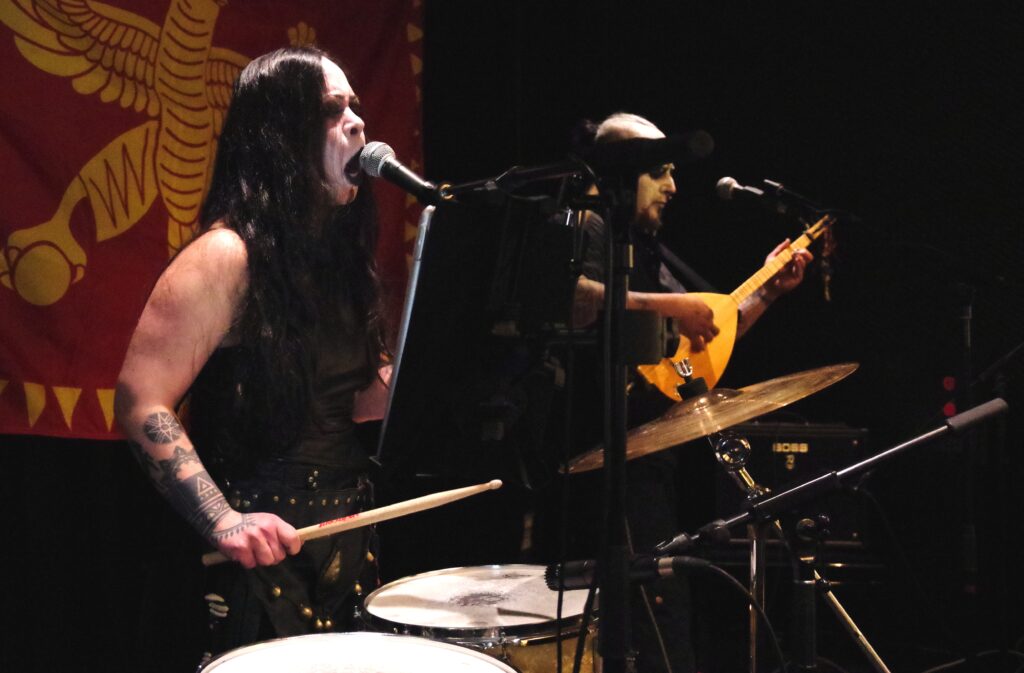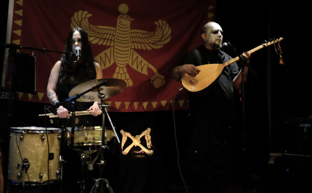 Op het podium verscheen het duo gehuld in black metal corpse paint, wat een grimmige uitstraling gaf in contrast met de twee sympathieke mensen die we na het optreden ontmoetten. Soit, Paganland bracht op imposante wijze een originele set. Drumster Revan had de uitstraling van een Sumerische demon en introduceerde elke song met een soort duivelse, spirituele leviet. Faustoos Crowley perste een reeks hypnotiserende folk black metal-riffs uit zijn met een microfoon aangepaste akoestische viersnarige setar, begeleid door de strakke en repetitieve drumpartijen van Revan.