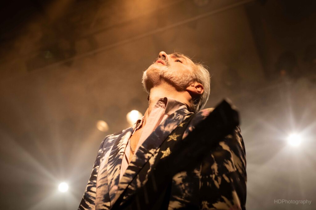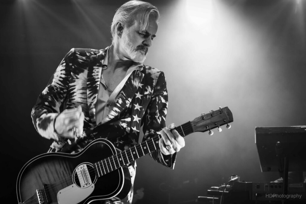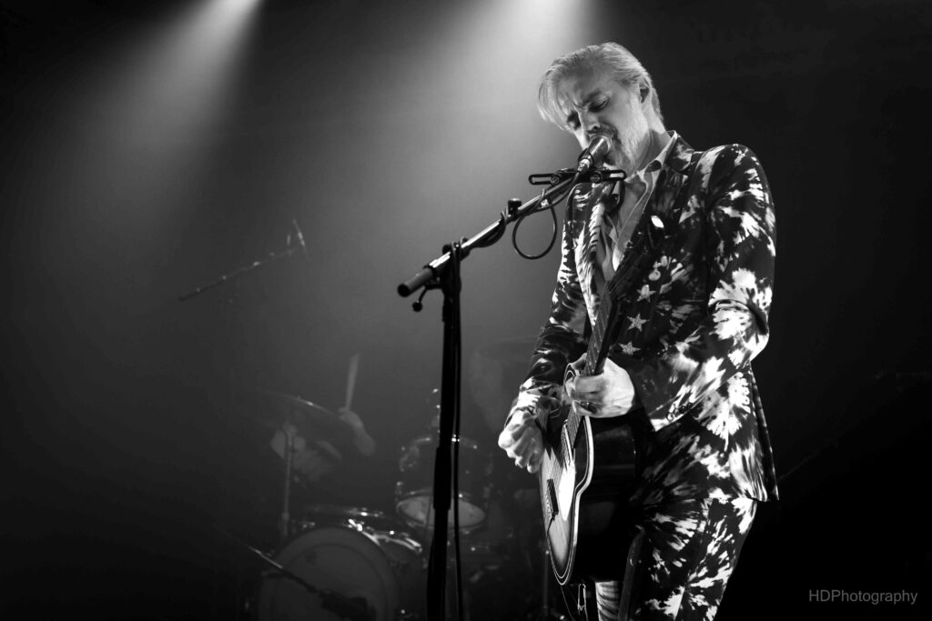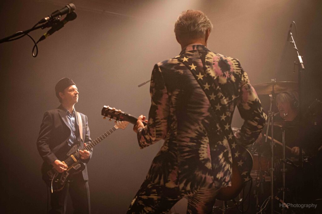 Sharp as a knife op het podium met de schoenen en de uitstraling van een Mink De Ville (maar met een beter karakter!) en alle bandleden strak in het pak tot en met Mario Goossens aan de drums, dat moet zweten zijn! Met The Key begonnen we aan het werk van de soloplaat Looking To Glide (of duo met producer Mitchell Froom), gevolgd door een stevig Tripping Down.