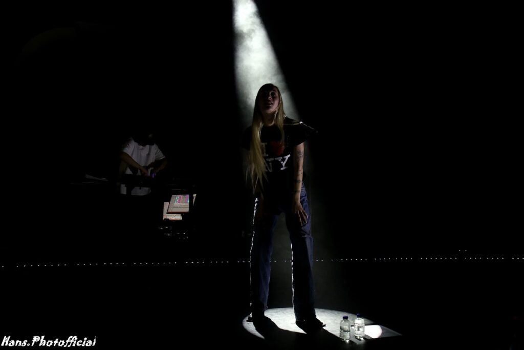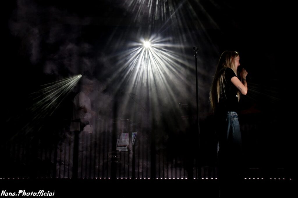 De inleiding met songs van de nieuwe plaat was heel knap, maar 4 jaar na datum werden de songs van debuutplaat Snowsniper uit 2019 nog steeds strak en lentefris gespeeld. Ze legde de zaal uit hoe ze toen met Sim op eenvoudige manier via YouTube beats en een sampler app nummers in elkaar bokste. Wat is real is zo een groovy song in de stijl van A.A. Bondy, intiem en doordringend. S10 kan een optreden lang nummers van divers allooi aan elkaar weven alsof het niets is. De songs van die plaat worden door rapteksten in een hiphop vs r&b-gewaad gehesen. “Alles wat ik doe voelt gewoon verkeerd. Ik kan dit niet meer, dingen gaan niet goed, zeg dat het niet boeit”, klonk het in Sorry, en Alleen zweefde constant in een heerlijk Boards Of Canada-woud. Over bossen gesproken, de lichttechnici waren weer geweldig op dreef in de Handelsbeurs. Het deed ons denken aan de feeërieke show die we Kaelan Mikla zagen geven op Grauzone in februari.