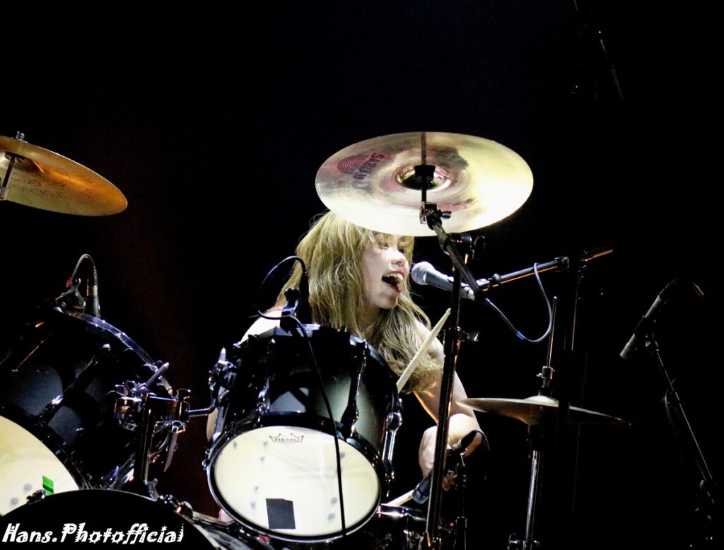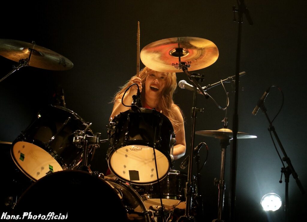 We hebben geïnformeerd bij een ‘Japanoloog’. De setlist zelf was in het Japans geschreven en er zijn een paar schrijfwijzen in Japan die de intonatie beïnvloeden. Zo zijn de teksten in een ‘stoer handschrift’ genoteerd. Best grappig als je dan iets leest als Wasabi of Twist Barbie (van Cobains favoriete plaat Burning Farm) natuurlijk. De outfits van de dames waren bovendien onberispelijk. Het leken wel figuurtjes uit een comic book, of een soort Japanse K3. Atsuko heeft mode gestudeerd en ze heeft een waslijst aan outfits gemaakt in de loop der jaren. Ze droegen alle 3 hetzelfde jurkje, maar in andere kleurencombinaties. Hoe hard Atsuko en Naoko ook hun best deden, de ster van de avond was toch drummer en overtuigende co-zangeres Risa.