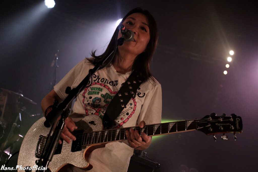 Atsuko zelf verliet de band tijdelijk (2006-2016) om zich op ruim 40-jarige leeftijd op een gezin te richten. Acht jaar geleden recruteerde Naoko de ondertussen 30-jarige Risa Kawano als drummer, en dat leek een regelrecht schot in de roos. We hadden ergens verwacht dat de nieuwe plaat Our Best Place prominent aanwezig zou zijn in de setlist, maar er werden slechts twee songs uit geplukt. We kregen een heel diverse greep uit 40 jaar Shonen Knife te horen. Het trio is overigens méér dan een voetnoot waard in de geschiedenis van de gitaarmuziek, en wel hierom: Shonen Knife was van meet af aan synoniem voor positiviteit en catchy snelle popnummers met teksten die nooit gaan over armoede, liefde of oorlog. Ze wilden enkel muziek maken die vrolijkheid en plezier omarmde. Los hiervan zei Naoko ooit dat ze te verlegen was om persoonlijke teksten te schrijven.