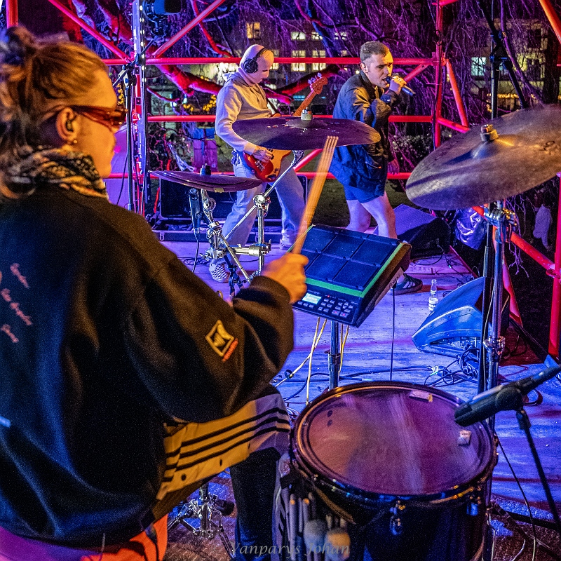 Ricky Bekstok bracht een unieke mix van techno, hiphop, punk en kermismuziek samen in een bruisende en overweldigende ervaring. Zijn muziek was als een draaimolen van prikkels die ons meenam op een opwindende rit. Mathias Grymonprez werd bijgestaan door zijn metgezellen, Arno Vanhoutte aan de bas en Dries Covers op drums. Samen vormden ze een ongeëvenaarde combinatie die hun chaotische en levendige muziek perfect tot uiting bracht. De speciaal ontworpen Villa Bota Radiotoren bood de ideale setting voor deze explosieve en bruisende muzikale belevenis.