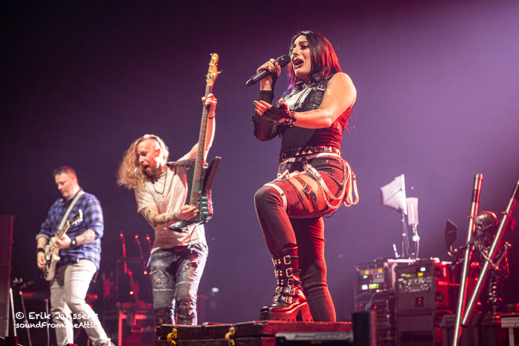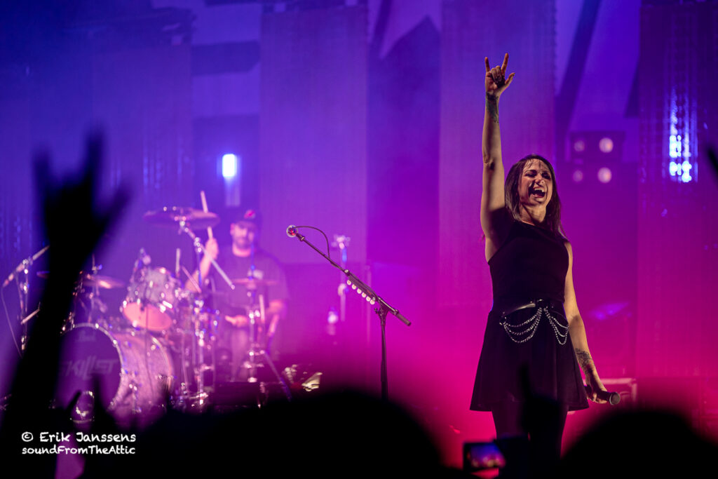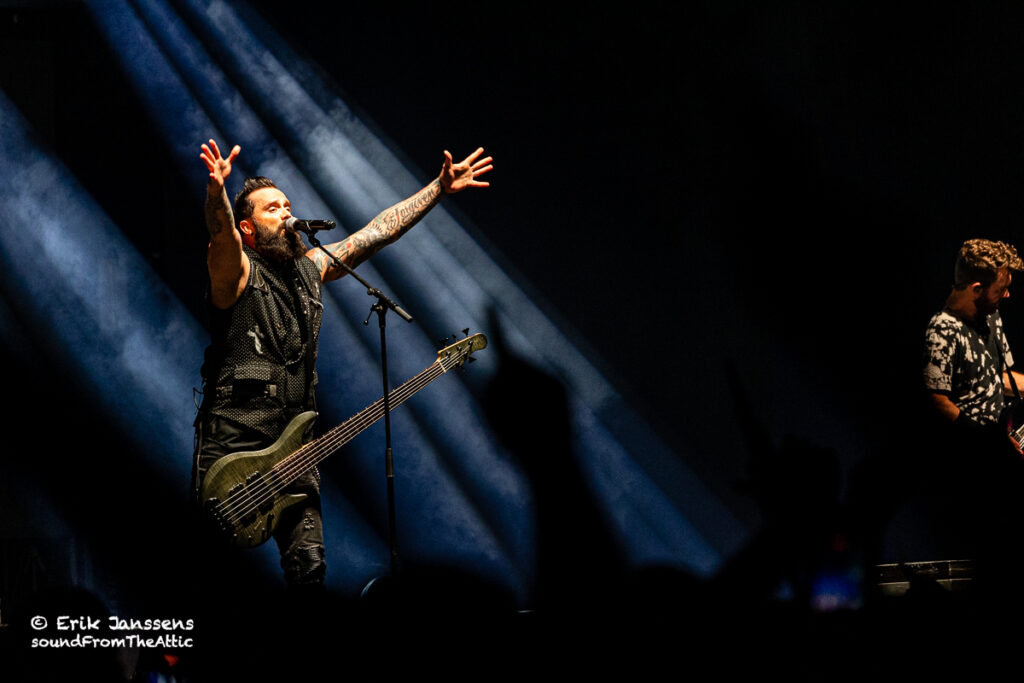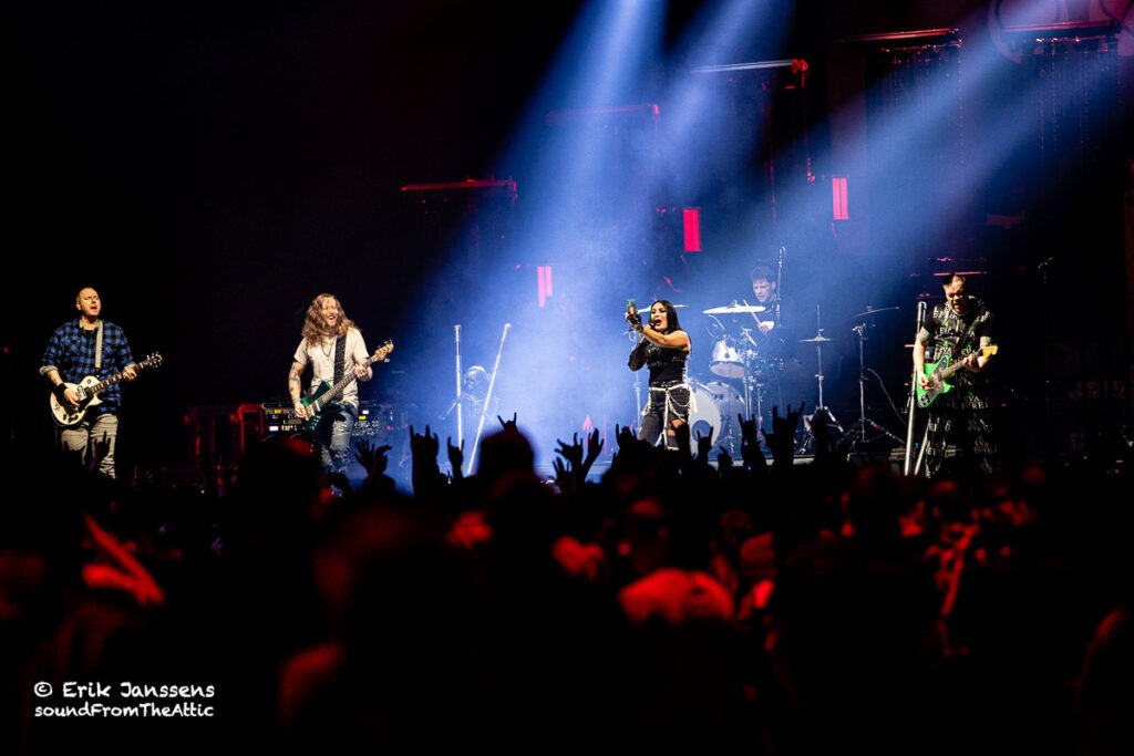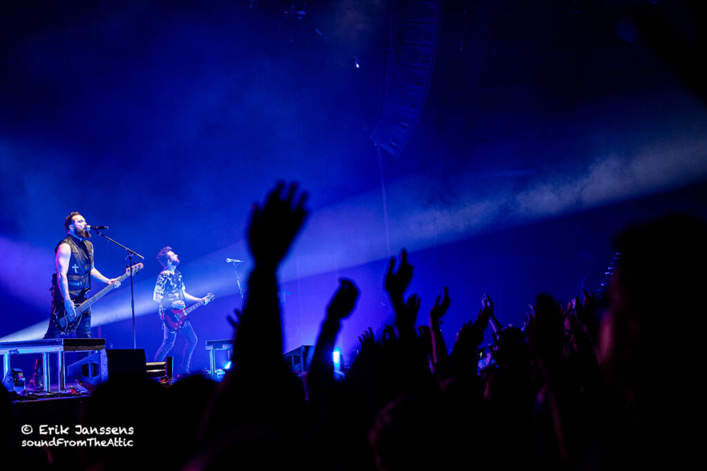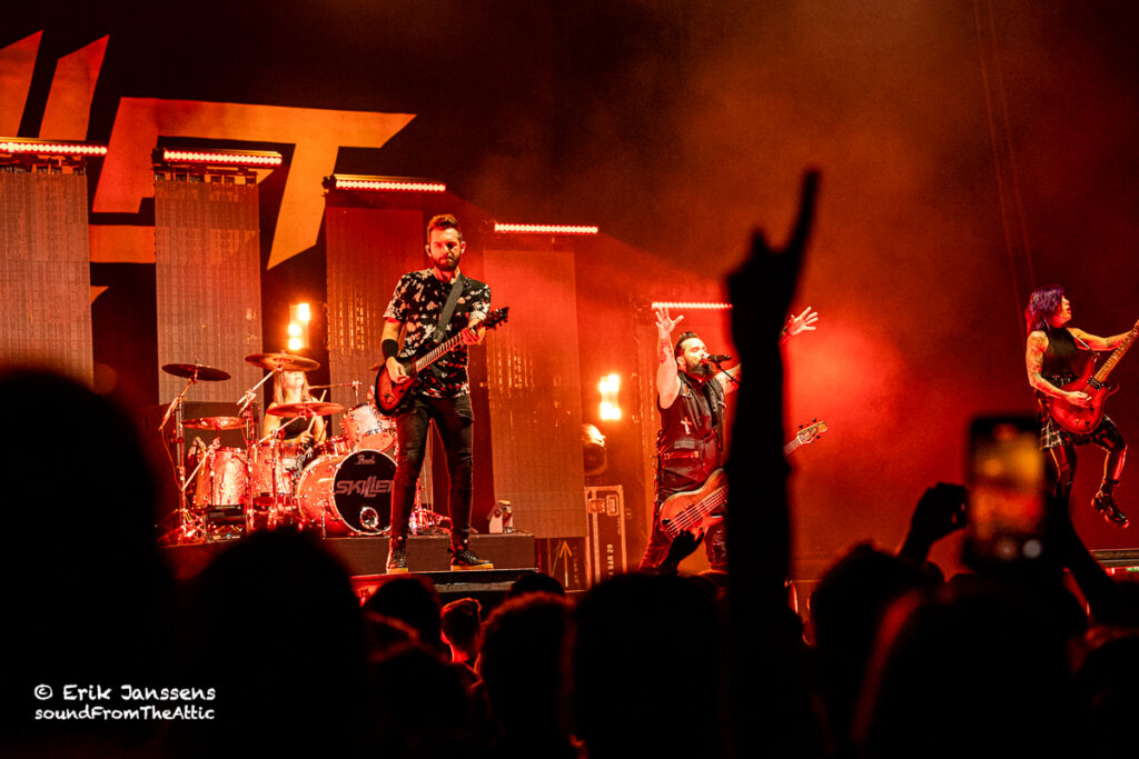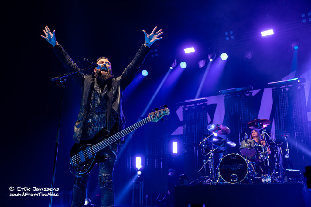 In 2016 en 2019 konden we Skillet al bewonderen in een uitverkochte zaal van Trix te Antwerpen. Dit jaar werd gekozen voor de veel grotere zaal in Paleis 12 op de Heizel. Iets te ambitieus want de zaal was maar voor een fractie gevuld. Zoals wel vaker hadden de afwezigen ongelijk; Skillet blijft een hoogwaardige show afleveren.