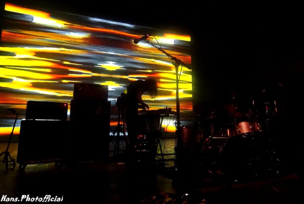 We blijven het grappig vinden hoe SLIFT zich als een Franse rockband uit Toulouse omschrijft. Op instagram heten ze dan ook Sliftrock. Zoals reeds aangestipt, jong en oud waren op een zeldzame wijze verenigd in de net niet uitverkochte AB Box. De broers Jean (gitaar, synths, zang) en Rémy Fossat (bas) vormen met hun studievriend Canek Flores (drums) een méér dan ‘powerful’ trio dat zich live door niets of niemand laat afleiden en een bijzonder imponerende wall of sound op kruissnelheid uitspuwde. De muziek van dit trio is dan ook een verpletterende genotservaring want we werden via de teletijdmachine van Professor Barabas teruggeslingerd naar de Woodstockjaren voor een spoedcursus psychedelische rock met docent Pink Floyd, progrock door King Crimson, enseventies hardrock door professor Black Sabbath, om dan te worden gemuteerd in het laboratorium waar doommetalgeleerde Sleep en stonerrockwijsgeer Kyuss met proefbuisjes aan de slag gingen.