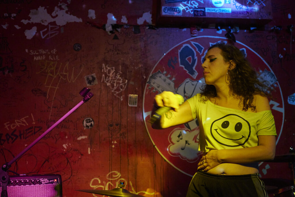 Dan maar eens iets compleet tegendraads programmeren om de felle Aussie-punk van weerwerk te bieden. En zo geschiedde met Dani Cosmic, een éénvrouwselectropunkact die voor niets terugschrikt en dus ook niet om voor een bende in punkrock geïnteresseerden haar show op te voeren.