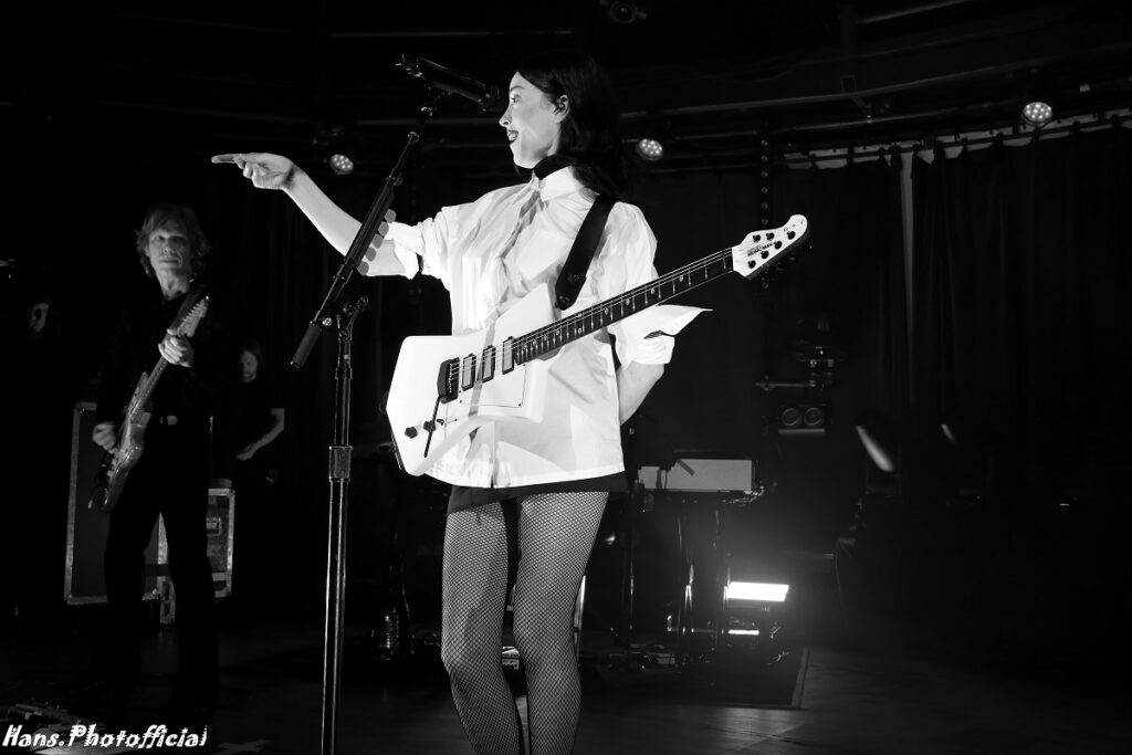 De Rotonde was gevuld met genodigden uit de muziekwereld en winnaars van een reeks wedstrijden in muziekbladen en op radiozenders. Het weerhield Annie er niet van om vol overgave een enorm beklijvende set te brengen, geflankeerd door haar 4 kompanen. Rachel Eckroth en Mark Guiliana op keyboards en drums deden achteraan hun ding in de luwte. Gitarist Jason Falkner en topmodel en bassiste Charlotte Kemp Muhl (in relatie met Sean Lennon) waren visueel uitdrukkelijker aanwezig maar alle aandacht ging naar Annie die een theatrale en knap opgebouwde set speelde. Voor de helft daarvan putte ze logischerwijze uit haar nieuwe plaat. Zwart/wit-nuances spelen een prominente rol tijdens deze tour inzake kledijkeuze bij zowel Charlotte als Annie. In tegenstelling tot eerder deze week opteerde St. Vincent voor een stijlvol – is ze ooit anders? – wit bloesje boven haar kort zwart rokje en boots. Haar gitzwarte loshangende haren pasten heerlijk bij haar zwarte netkousen.