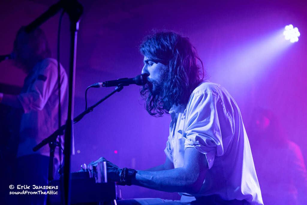 Nadat het trio op hun podium verscheen en Ian zijn plastiek berenoren, Michélé zijn poezenoren en Femke haar konijnenoren hadden opgezet vloog het trio er stevig in. Ze deden dat met stomende riffs die wat ruiken naar Black Sabbath en Royal Blood, met de bijzondere geluiden die DeFeudis uit zijn Moog toverde en Decoene’s denderende drums. Ian zong als een bezetene terwijl Michélé de backings en de schreeuwen voor zijn rekening nam.