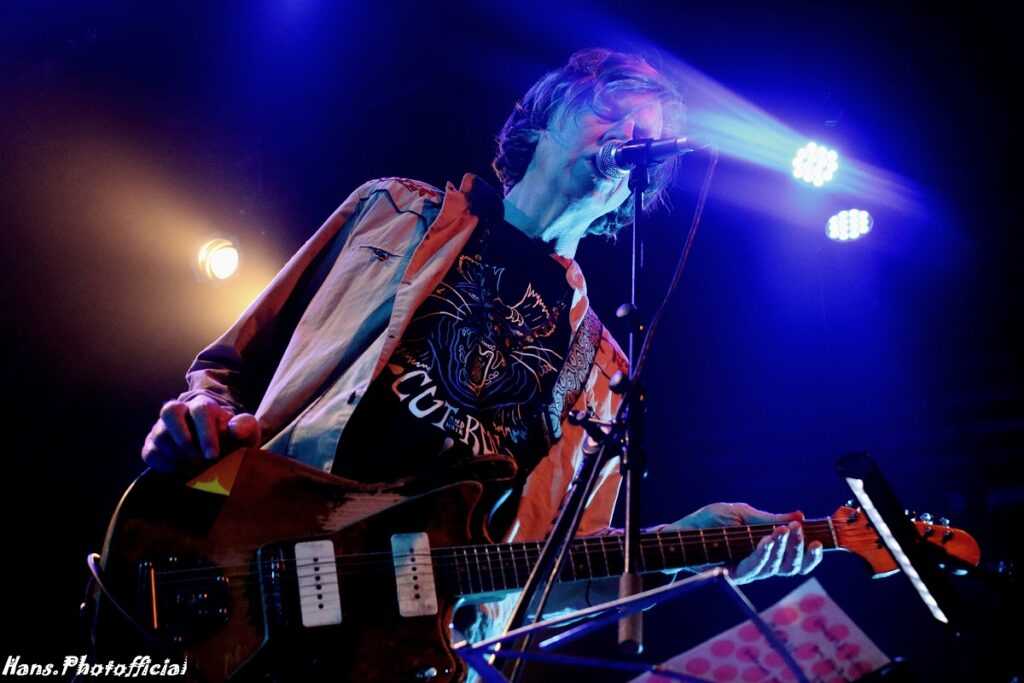 Het was heel erg druk in Leffinge op een druilerige, winterse, maartse buienavond. De parkeerplaatsen waren duur want niemand minder dan de magische sonische gitaarheld Thurston Moore kwam langs in De Zwerver met zijn Thurston Moore Group. Die is nog eens aan een kleinschalige veroveringstocht bezig in onze contreien en heeft ook verregaande plannen voor een nieuw album. Onnodig te vermelden dat dit concert uitverkocht was, maar we doen het toch. Thurston had iemand meegebracht, met name Jayan Bertrand, de uit Miami (Florida) afkomstige zanger van de band Seafoam Walls. Absoluut een speciale figuur met een coole bril en dito boots, maar ook gezegend met een warm glooiende stem en knappe gitaarskills. Zijn band is niet overgevlogen dus mocht Jayan het op zijn eentje demonstreren. Onze aandacht wist hij niet vast te houden, ondanks de beeltenis van de 43 jaar geleden omgekomen stuntacteur Krishnan Nair, a.k.a. Jayan op zijn gitaarriem.