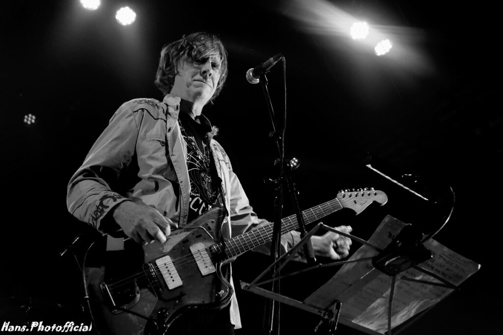 Gebrek aan voorbereiding? Dit is alvast iets wat we Thurston, wiens band we hieronder gemakshalve als TMG gaan betitelen, nooit hebben kunnen aanwrijven. Wat opviel tijdens de reeds gespeelde concerten van deze tour is het ontbreken van nieuwe songs, hoewel er al 2 ‘gelekt’ waren. Hij speelde de voorbije weken dezelfde set als een jaar geleden, abstractie makende van zijn Spirit Counsel tour die hem vorige zomer naar het vermoedelijk eenmalige Hear Hear! bracht. TMG kwam echter meteen verrassend uit de startblokken. Een erg ontspannen ogende Thurston kwam met een grote glimlach en een potje dampende thee het podium opgestapt. Eerste taak was het herschikken van de songteksten want die zaten niet in de volgorde van het spiekbriefje aan zijn voeten, genaamd setlist.
