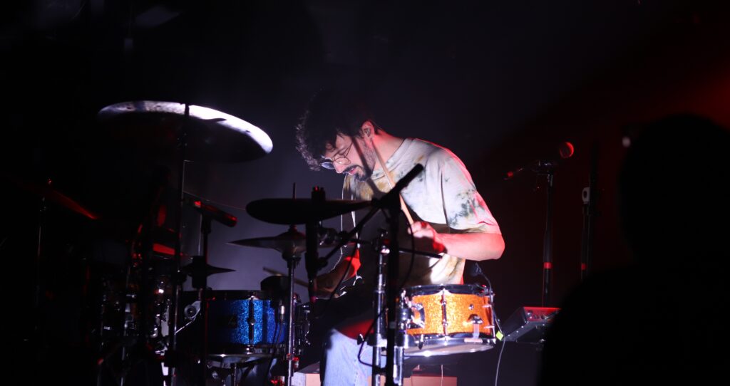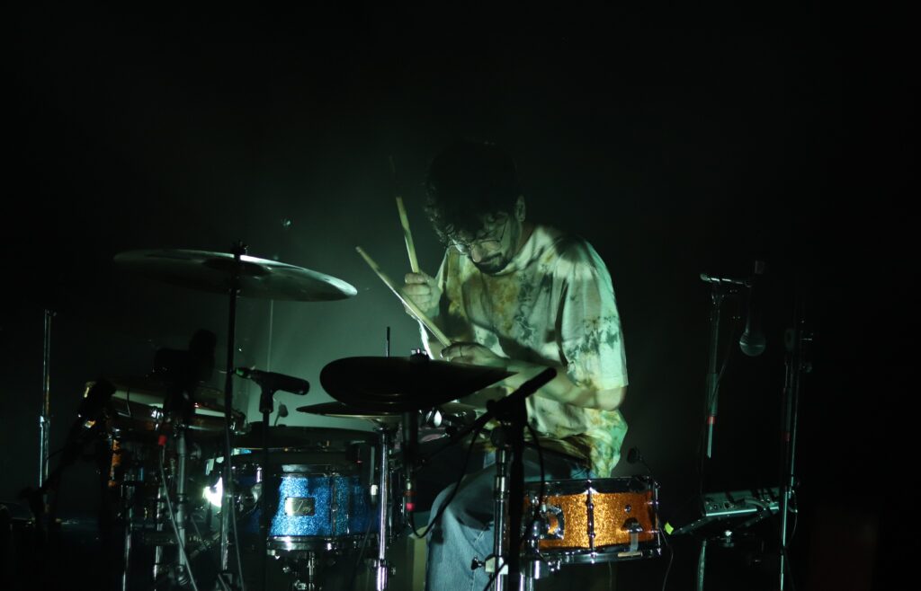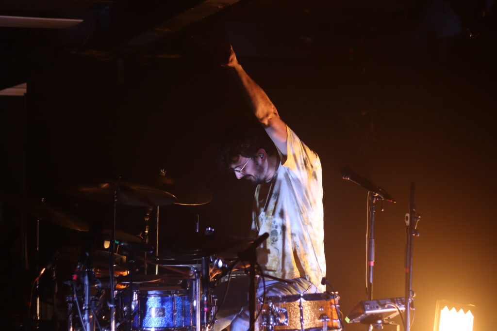 Vanaf dan loopt het niet helemaal vlekkeloos, al deert het niemand in het diverse, talrijk opgekomen publiek, hoofdjesschuddend als collectief gebrainwashte schapen, en als er enthousiast gemekker opstak, was het toen er occasioneel een stem sample opsteeg vanonder het drumstel.