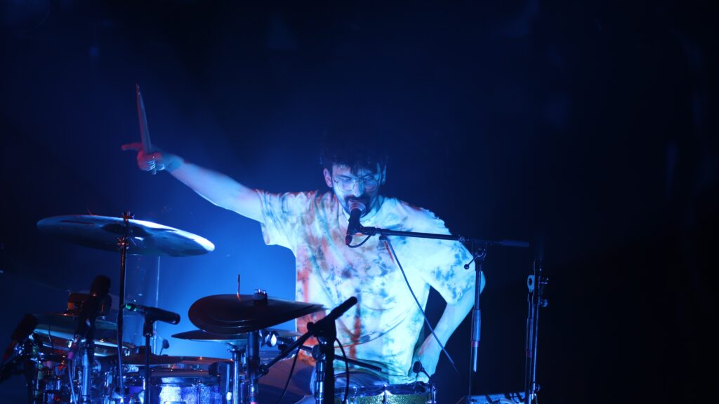 Een korte Intro en het drumstel werd op slag in brand gestoken met Leviathan, gevolgd door een goed duo knisperende tracks uit de komende plaat. De Brusselse Mowgli start, geruggensteund door duistere schizofrene toetsen, het met Dorian Dumont geschreven Reshaped… rumble in the jungle!