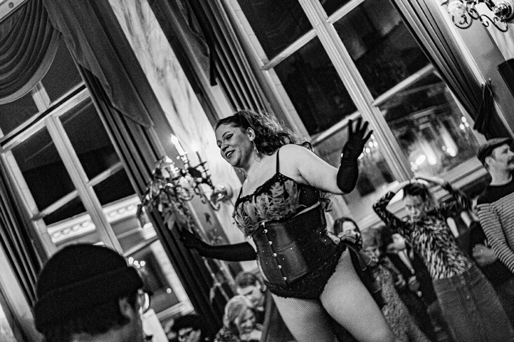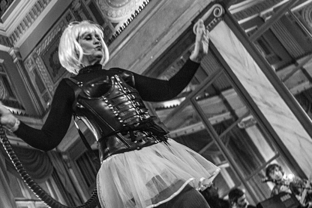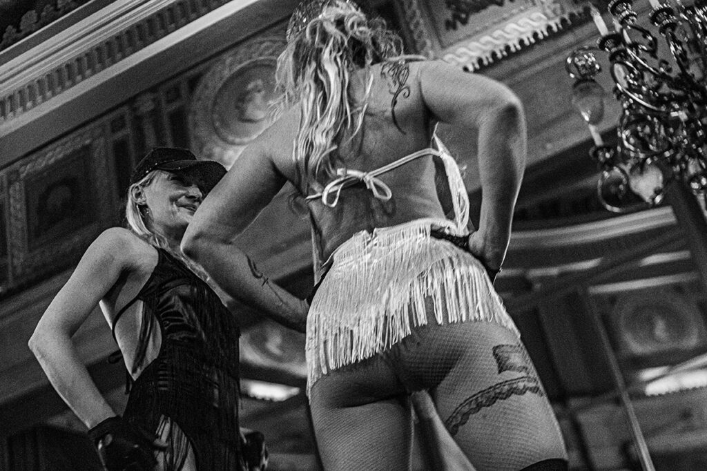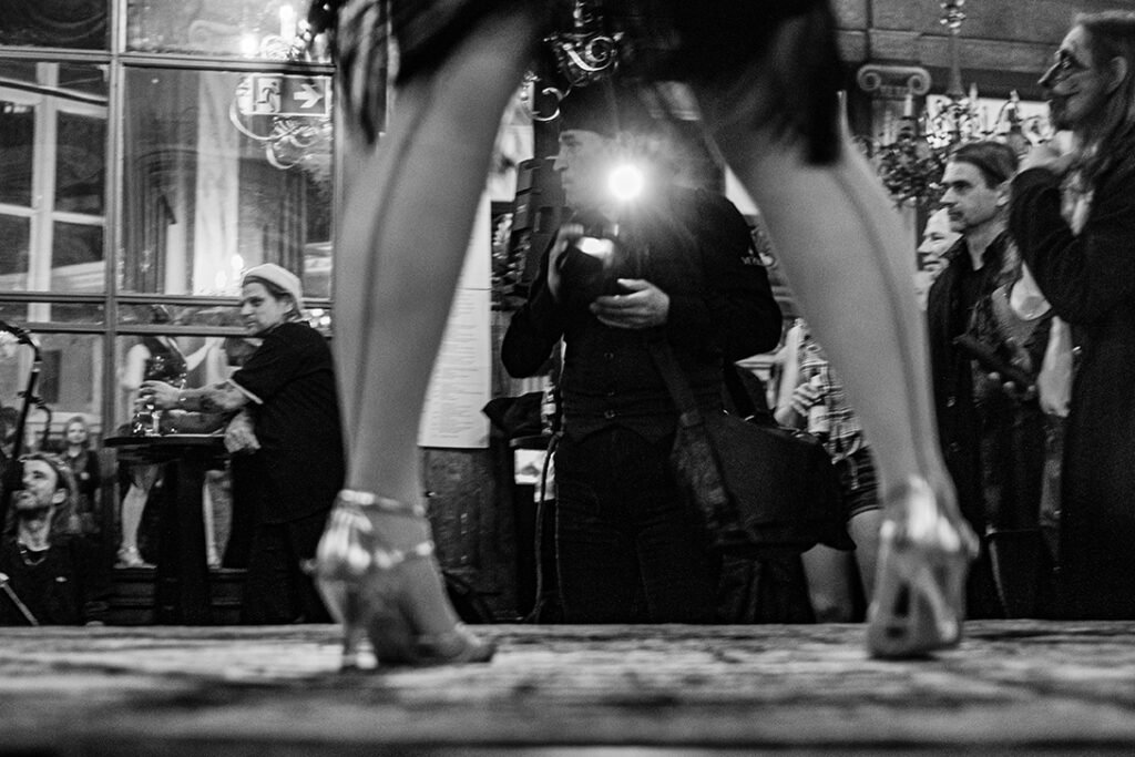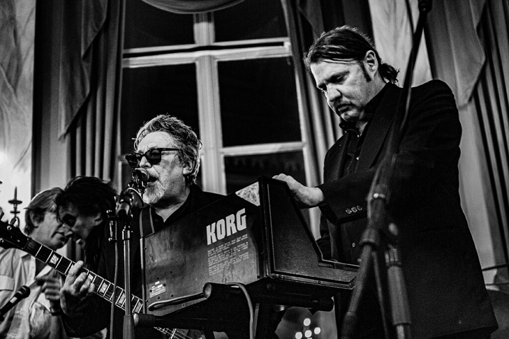 Iets na half elf mocht Mercelis de boel aftrappen. Hun versie bleef redelijk dicht bij de Velvets. Matt Watts met een Fender, Jef Mercelis achter de Korg. Na een tiental minuten vervoegde dichter Jan Ducheyne zich bij het kwartet om een ode te brengen aan Gothicsmurf Vitalski. En kwam de linkshandige Kloot Per W erbij, waardoor het nummer nog meer Velvetssfeer kreeg. Ondertussen was burlesque dame nummer 1 begonnen aan haar act en was het in de overvolle foyer zeer onduidelijk wie publiek en wie act was. Twee dames in catsuit en een Duvel in de hand wachtten geduldig tot ze het danspodium mochten beklimmen terwijl meisje nummer 2 gekleed als een Blauwe Engel erop ronddraaide.
