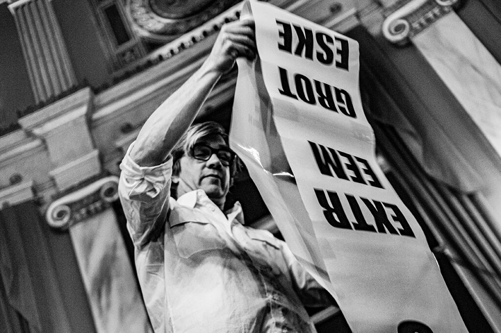 Plan nummer twee: in de foyer staan zeventien groepen geprogrammeerd die één nummer aansluitend en ononderbroken zullen spelen: Ride into the Sun van de Velvet Underground. Vitalski had minutieus en heel moeizaam wekenlang gepuzzeld aan een tijdschema dat vanaf minuut twee al om zeep was wegens muzikanten – en vooral bassisten – niet te vinden. Prachtig.
