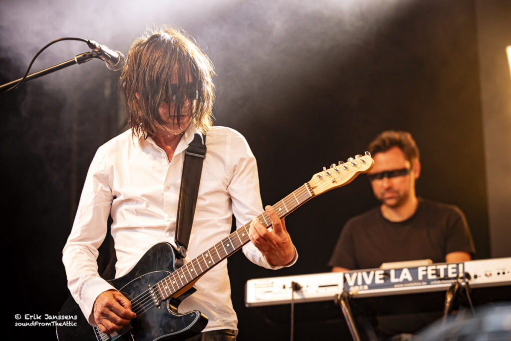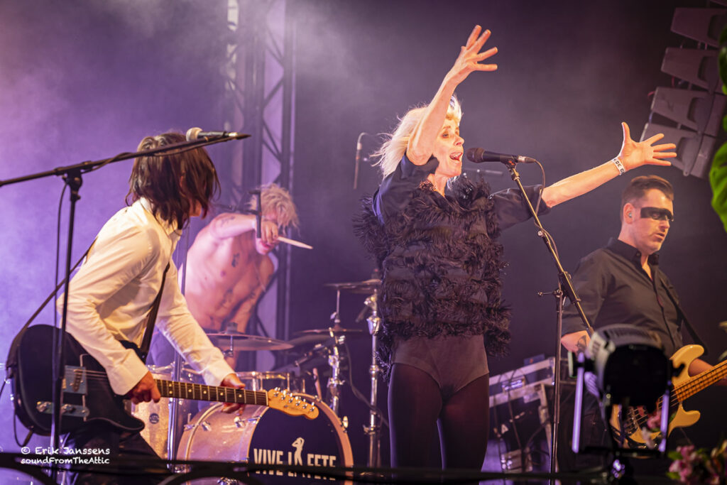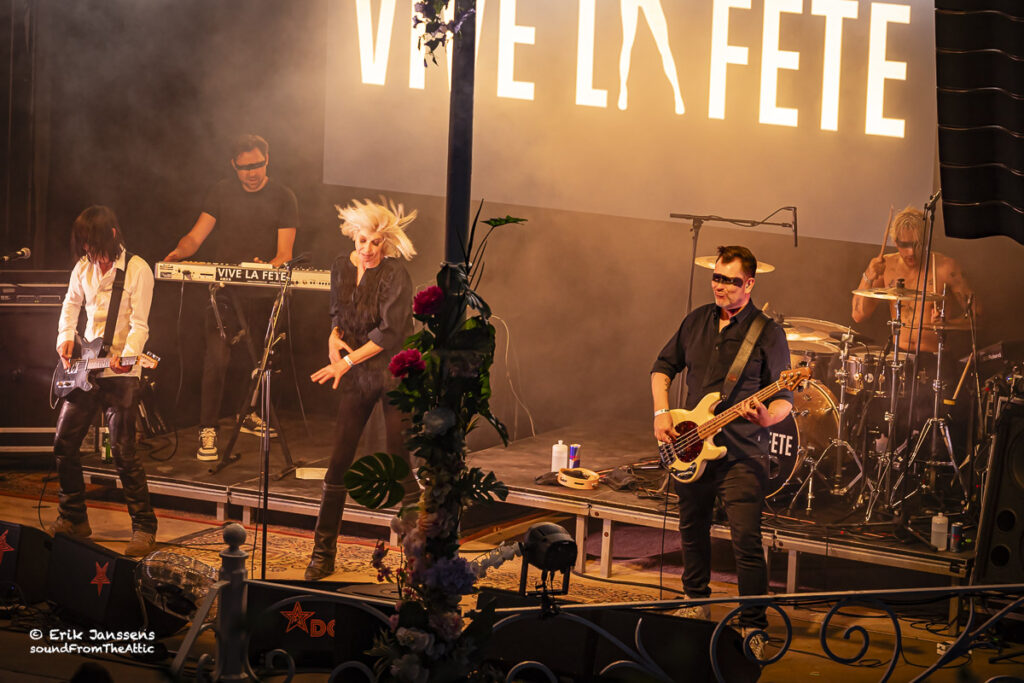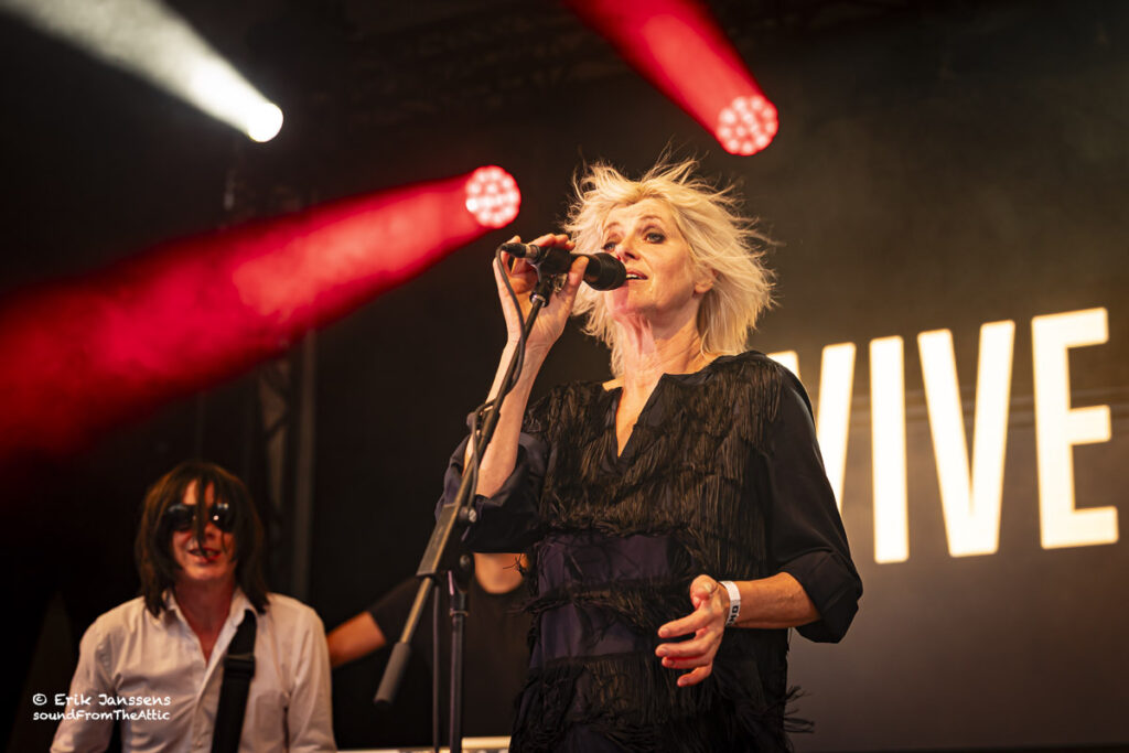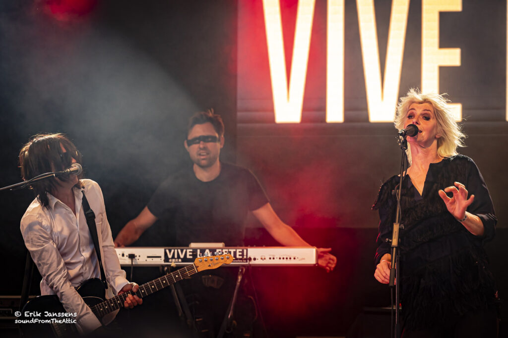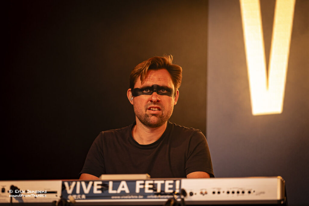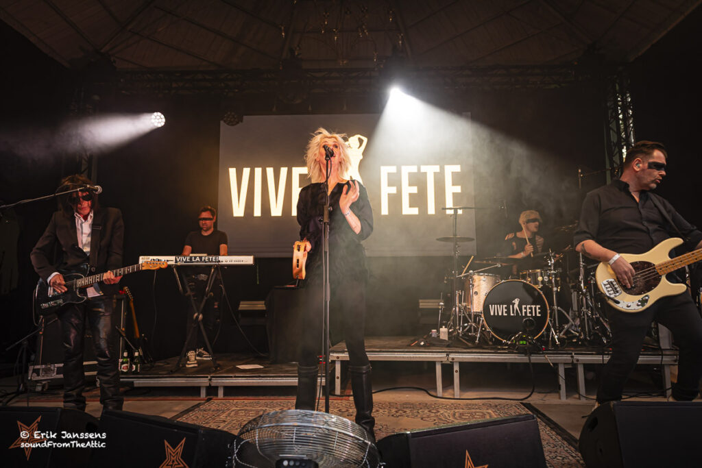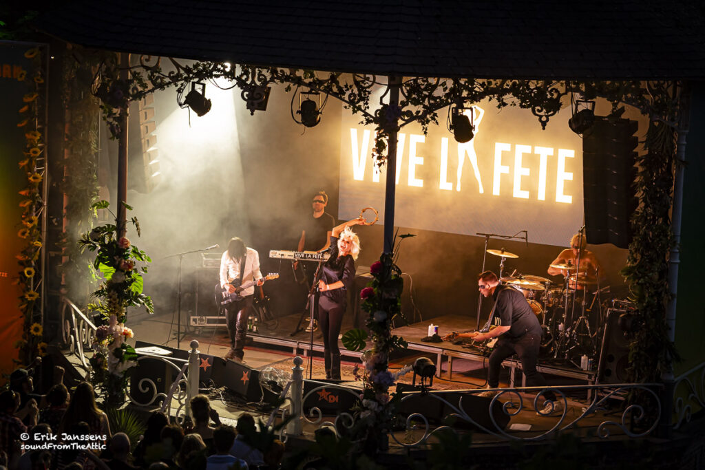 Rond negen uur liep het plein voor de kiosk vol met fans van Vive La Fête. Het publiek bestond voornamelijk uit veertigers en “iets” ouder. De band van Danny Mommens en Els Pyno draait al meer dan 25 jaar mee in de Belgische muziekscene van electroclash, syntpop en new wave. Hun muziek, een combinatie van dansbare beats, Franse chansoninvloeden en een vleugje kitsch worden nog altijd gesmaakt door hun talrijk aanwezige fans.