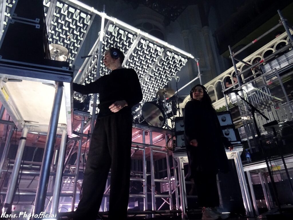 Die was ook weer van de partij en zat op de tweede verdieping en daar was het drummen voor een plekje… Igor Cavalera werd aan de andere kant synchroon bijgestaan door Blake Davies en centraal zat een debutant voor “Soulwax live”-aangelegenheden want uiteraard is Aurora Bennett een geweldige drumster. We hoeven niet te vertellen dat de visuele aanblik van deze 4-3 opstelling de monden deed openvallen en de spanning naar ongekende hoogtes omhoog krikte. Desondanks werd niet met een banger geopend, wel met nieuwe nummers, Hot Like Sahara en Idiots In Love. De sfeer in de zaal was meteen opperbest en het was in alle uitverkochte drukte lekker warm heupwiegen.