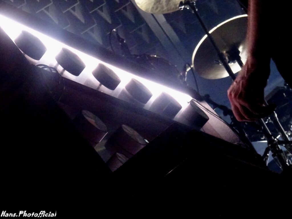 De onweerstaanbare lawine aan drumroffels in Missing Wires deed de zaal al vroeg naar een koortsige temperatuur klimmen, er waren geen Dafalgans ter wereld in staat die te doen zakken en dus gaven we er maar met z’n allen een lap op. Het hek was helemaal van de amsterdam toen Krack werd ingezet na een briljant Is It Always Binary? De klinische belichting en stalen stellingen lieten een koud sfeertje uitschijnen maar het was het behaaglijk warm fabriekspandgevoel dat ons compleet overstag liet gaan voor een indrukwekkend dansfeest dat zowat een 80 minuten workout voor gevorderden bleek te zijn.