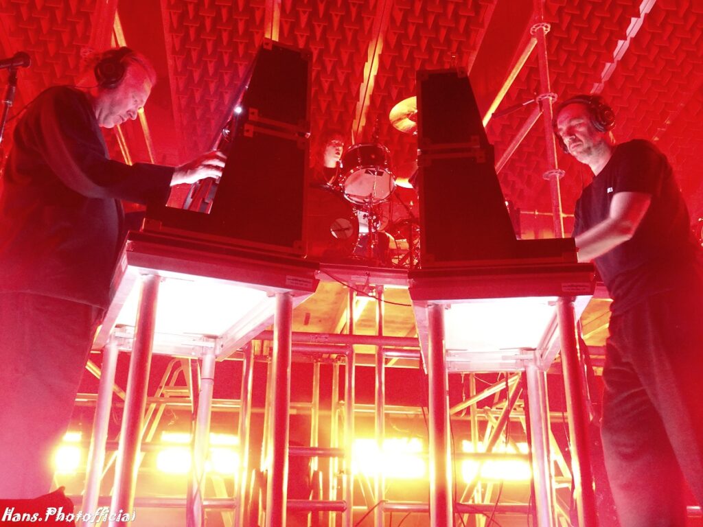 De onweerstaanbare lawine aan drumroffels in Missing Wires deed de zaal al vroeg naar een koortsige temperatuur klimmen, er waren geen Dafalgans ter wereld in staat die te doen zakken en dus gaven we er maar met z’n allen een lap op. Het hek was helemaal van de amsterdam toen Krack werd ingezet na een briljant Is It Always Binary? De klinische belichting en stalen stellingen lieten een koud sfeertje uitschijnen maar het was het behaaglijk warm fabriekspandgevoel dat ons compleet overstag liet gaan voor een indrukwekkend dansfeest dat zowat een 80 minuten workout voor gevorderden bleek te zijn.