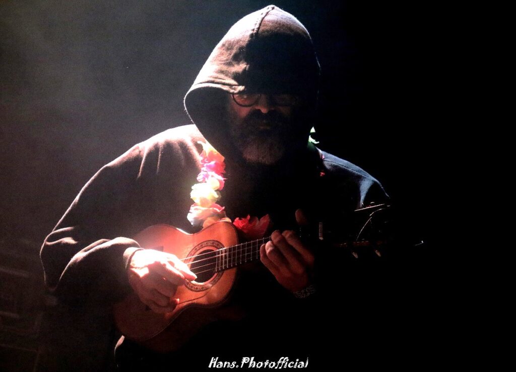 Het gebruik van saxofoon en fluit gaf het geheel in Diksmuide een zekere samba jazz flair mee, getekend Chico Oswald. Het vijftal musiceerde in zwarte hoodies mét kap, maar voorts getooid met een pole pole-krans. Bizar maar dat past bij wat we hoorden. Het eerste deel van de set klonk vooral lo-fi waarbij de nummers zelden de twee minuten-grens haalden. Er werd een melodie op gang getrokken die binnen de halve minuut geschrapt werd en met wisselend succes vervangen werd. Naar verluidt was Munha ziek en misschien verklaarde dit het feit dat het optreden nooit gestroomlijnd klonk. Captain Beefheart’s Magic Band zou een inspiratie zijn, maar ons viel eigenlijk alleen gitarist Jota Dale op die de gitaar vaak inruilde voor een Braziliaanse cavaco, wat een beetje op een kindergitaar leek.