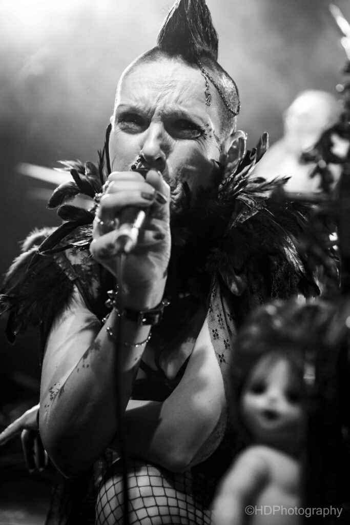 Maar dan was het de beurt aan N.e.l & J.P om met gepaste trots hun kersverse plaat voor te stellen. Terwijl de vinyl aan de merch stond te blinken, speelde de band de intro van Kom Dichter. Band, inderdaad, het duo werd deze keer geruggesteund door vrienden David Van Belleghem (o.a. Delavega en Kenji Minogue) op drums en Dirk Bryssens op de viool. Nel pakte vervolgens het podium helemaal in met haar punk-gothic-glamour eigenste zelve: ‘Vergeet even je grenzen, want je bent op een plek waar alles kan. Dus kom dichter.’