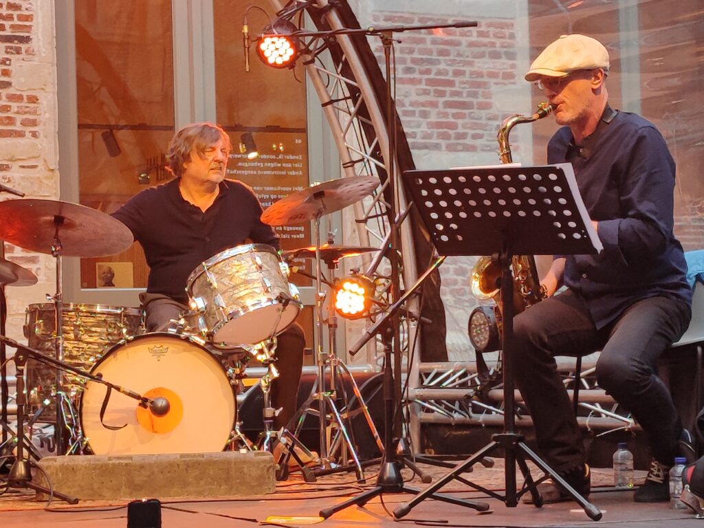 Fijn waren de vele een-tweetjes tussen Deruytter en Pallemaerts. Machtig en imposant was het hoe Deruytter zijn tenorsax liet vertellen, zachtjes croonen of luid huilen of zelfs bulderen. De pianovirtuositeit van Jozef Dumoulin was ook om duimen en vingers bij af te likken. Met ook sterk werk op de synths, met soms al dan niet bedoelde vette knipogen naar zowel de jazzy, poppy als funky Herbie Hancock, heel eventjes dachten we zelfs ook een echo van Jon Lord te horen. En uit die keys toverde Dumoulin eigenlijk ook baspartijen. Wow!