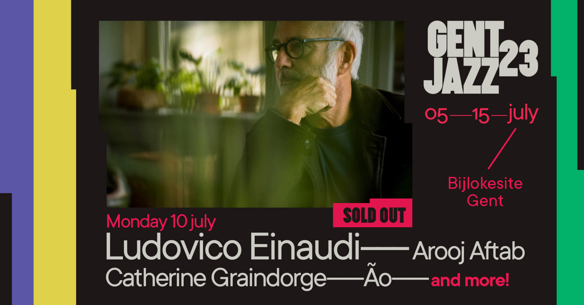 Anno 2023 is een groot deel van de mensen bezig met het onthaasten uit het drukke leven. Daardoor zijn de neoklassieke componisten heel geliefd dezer dagen. Dat was te merken toen Gent Jazz bekend maakte dat de Italiaanse pianist/componist Ludovico Einaudi dit jaar naar het festival zou komen. De kaarten vlogen de deur uit, zodat er al gauw een tweede dag werd ingepland met deze Italiaan. En ook deze dag was vrij snel uitverkocht (zoals alle optredens die Einaudi in ons land doet). Het festival heeft de line-up van die dagen dan ook mooi aangevuld om binnen het genre te blijven. Onze eigen Ão, met een mix van fado, Zuid-Amerikaanse gitaarklanken en subtiele elektronica, mocht twee dagen hun wondermooie melancholische nummers voorstellen aan het publiek. Verder stonden maandag de Brusselse violiste/componiste Catherine Graindorge, de Pakistaanse zangeres Arooj Aftab, pianist Noah Vanden Abeele op het menu en als kers op de taart mocht Ansatz der Maschine de dag afsluiten.