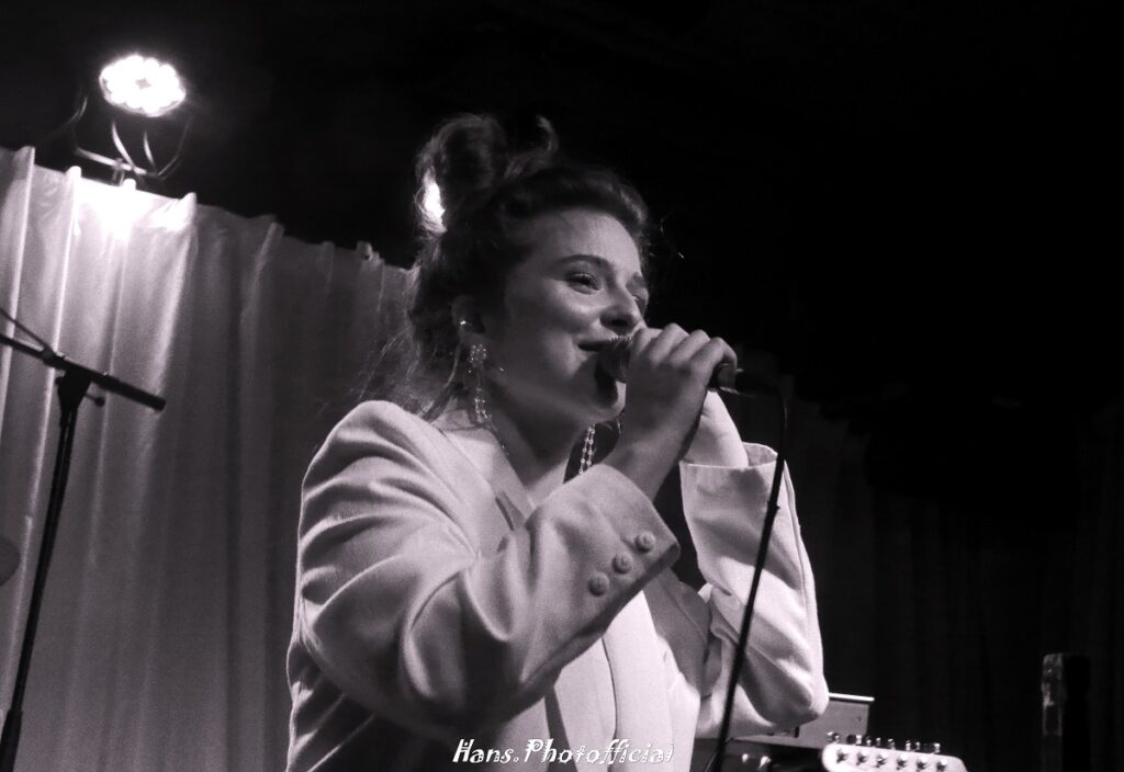 Gisèle heet inderdaad Joke Verhulst in het gewone leven van alledag. Toen we de Charlatan betraden was de verrassing compleet want de zaal stond propvol. Geen optreden in het café maar wegens een uitermate succesvolle ticketverkoop zou Gisèle in de grote zaal spelen en dat met het voorprogramma Desma waarvan we jammer genoeg slechts de laatste twee nummers hoorden. Bijna 300 fans stonden samengepropt in een uitgelaten sfeer. Lang geleden dat we nog zoveel volk in de Charlatan zagen voor een indiepoprock-optreden. We polsten bij een bevriende fotograaf die ons vertelde dat ze “de Joke van The Voice” was. Het verklaart natuurlijk haar populariteit maar dat ze nog zoveel volk op de been krijgt na bijna 4 jaar en een naamsverduistering zegt wel veel. Joke betrad het optreden met 4 muzikanten.