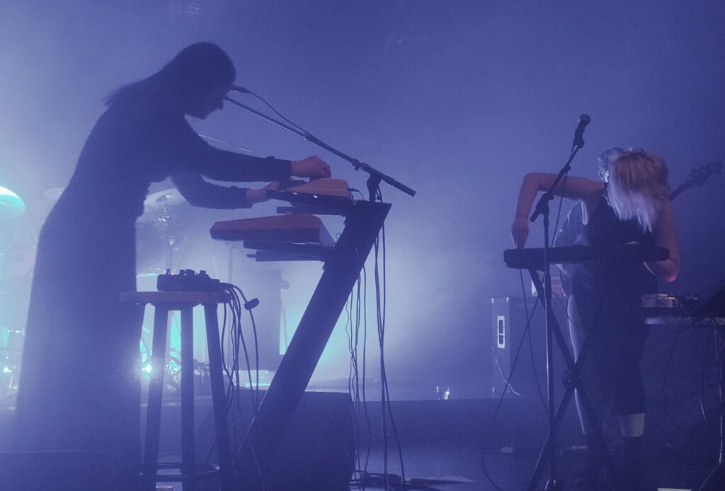 Wanneer de zaallichten opnieuw doofden, even voor de klok van tien, hadden we nog geen flauw benul van wat ons te wachten stond, behalve dan een ongetwijfeld sterke show van Himshe. De twee keyboardeilanden centraal vooraan op het podium, zeg maar de heimat van Mishi Erine en Naomi Sijmons, en het drumstel wachtten ons en de muzikanten op.