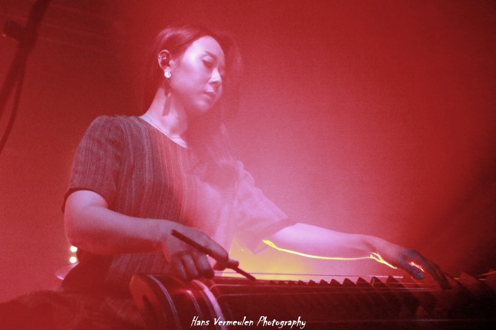 In dit kader schetst de band dus de kiemen van een psychedelisch decor waarin de songs rijpen. Eunyong Sim smeet zich gracieus over haar geomungo en we kregen met Event Horizon en Sun.Tears.Red sterk naar Tool geurende song voor de voeten geworpen. Stilvallen, terug aanzwengelen en ontploffen. Je kent het wel. Gezichtsemoties konden we niet aflezen in de rode gloed die de band als een smoggordijn van het publiek afschermde. Maar de ‘geomungoliste’ deed de volle zaal genieten en naar meer verlangen.