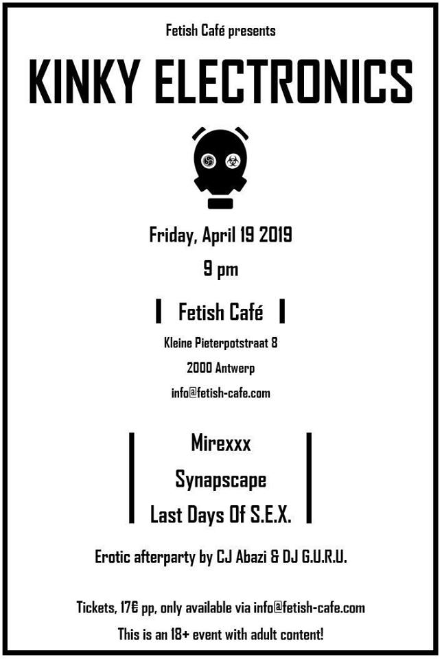 Met het eerste echte zomergevoel, in strak korset en verduiveld hoge pumps op naar Antwerpen voor wat een zinderende avond beloofde te worden. Zoals steeds gaan de deuren van het Fetish Café open voor al wie er zich goed bij voelt. En voor nieuwsgierigen. Maar deze avond vooral voor elektroliefhebbers.