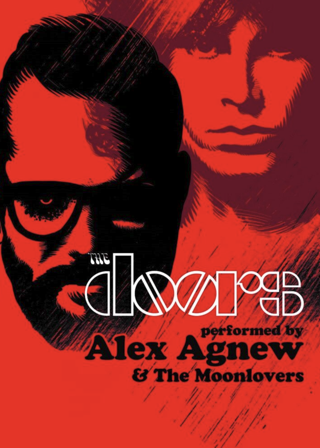 Zijn habitat, als stand-up comedian, podcaster en zanger, is een podium. Tot zelfs dat van het Antwerpse Sportpaleis toe. Wij zagen Alex Agnew vooral als comedian aan het werk, maar stonden ooit ook op de eerste rij voor een optreden van zijn sounds-a-bit-like-Metallica-metalband Diablo Blvd, toen toch wel als fan. De zwanenzang van Diablo Blvd is al even gezongen, maar Alex Agnew had nog meer in zijn muzikale mars. Binnen het concept ‘Bloemen Noch Kransen’, bracht hij samen met The Moonlovers een eerbetoon aan Jim Morrison. Uniek, dus voor herhaling vatbaar!