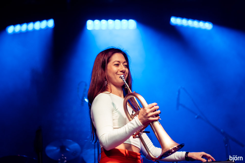 Want ook op de Main stage stond er vuurwerk op het programma met het kwartet rond de in Londen geboren Brits-Bahreinse trompettiste Yazz Ahmed. Ze speelde al samen met klinkende namen als John Zorn en het London Jazz Orchestra en stond in Brussel op het podium met Ralph Wyld (vibrafoon), David Manington (bas) en Martin France (drums).