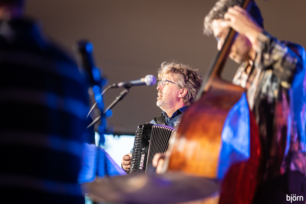 Bedenkers van 3men en centraal op het podium accordeonist Philippe Thuriot en bassist Kristof Rosseeuw.