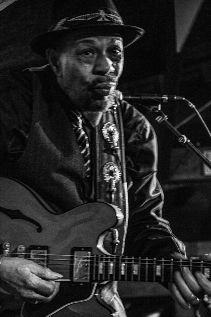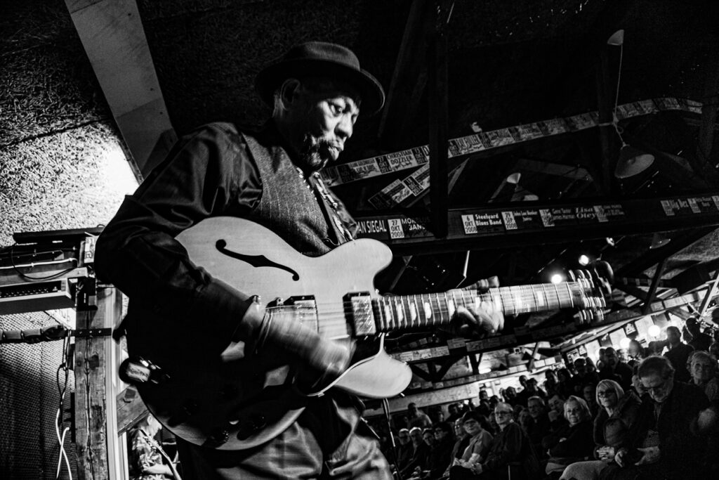 ‘Every inch a gentleman’, blueslegende John Primer (78). Gekleed in een driedelig zilvergrijs pak en hoed betrad bij het podium, verwelkomde het publiek, gordde zijn felrode Gibson om en nam het mee op een blues trip van bijna drie uur.