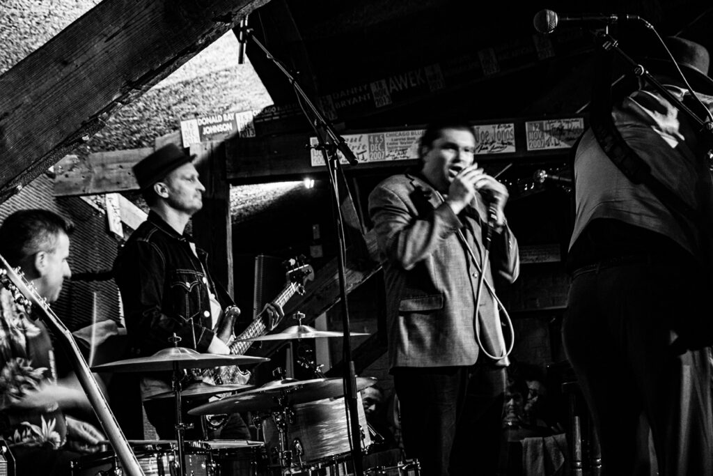 De Banana Peel was tot in de nok gevuld met bluesfans allerhande uit heel het land. Primer heeft dan ook een trackrecord die leest als een encyclopedie van de blues. Speelde onder andere bij Junior Wells, Muddy Waters en Willie Dixon’s Chicago All Stars en is sinds midden jaren 90 solo bezig. In Ruiselede was de strakke ritmesectie Frans en op mondharmonica Giles Robson, een imposante Brit met brillantinekuif, die net uit The Sopranos kwam weggelopen.