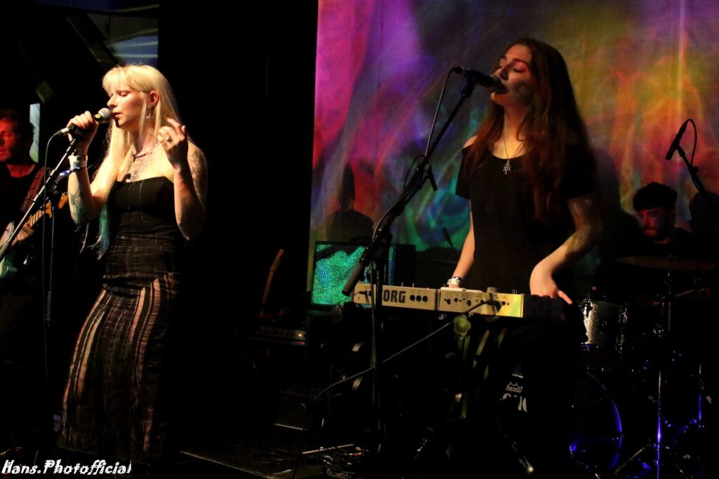 Er is altijd iets boeiends te zien en te horen bij The New Eves. Middenin een song versnelt of vertraagt die plots om dan iets later zonder waarschuwing weer een andere koers te varen. Kate hield zich steevast buiten de tyfoon die de andere drie ontwikkelden. Ze had ook relatief normale kledij aan, de anderen waren in een Bokrijkachtig keltische plunje getooid. En wij maar denken dat we Dranouterfolk zouden te horen krijgen, niet dus. Ella, wat een stem ook, drumde al rechtstaand en wisselde dus af met klarinet. Vaak bracht zij de songs op gang en dan deden Nina en Violet van alles en nog wat. Het was constant van de ene naar de andere kijken. Een viool dient niet om gewoon een portie klassiek toe te voegen, in de handen van Violet is het bijna een moordwapen. Songs worden opengereten en als dat al niet met de viool gebeurt, dan met haar stem. Zowel zij als Nina waren ook met een buitengewoon wendbare stem gezegend die engelachtig klonk, maar een minuut later des duivels was. Je zag Nina vaak fijntjes lachen als ze even opzij keek richting Violet. En dat was nog niet eens tijdens het stukje performance art waarbij Violet een soort rituele dans uitvoerde.