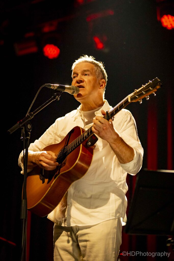 Cole – in smetteloos wit en goed bij stem – thee deze keer – trapte solo af op akoestische gitaar met Don’t Look Back, een nummer uit zijn solo debuut van 1990: “Life seems never ending when you’re young. Oh no no no”. Het krijgt een andere betekenis uit de mond van een 62-jarige. Dan vervoegde Commotion Neil Clark hem op electrische gitaar voor Mister Malcontent, en bij Trigger Happy is de compacte band compleet met Blair Cowan (ook een Commotion) op keyboards en Signy Jacobsdottir op percussie en drums. On Pain volgde, het titelnummer van de degelijke nieuwe plaat, in een aangepaste versie voor de live instrumenten. “This song is just a little baby,” klinkt het bij Lloyd Cole, en de papa is trots.