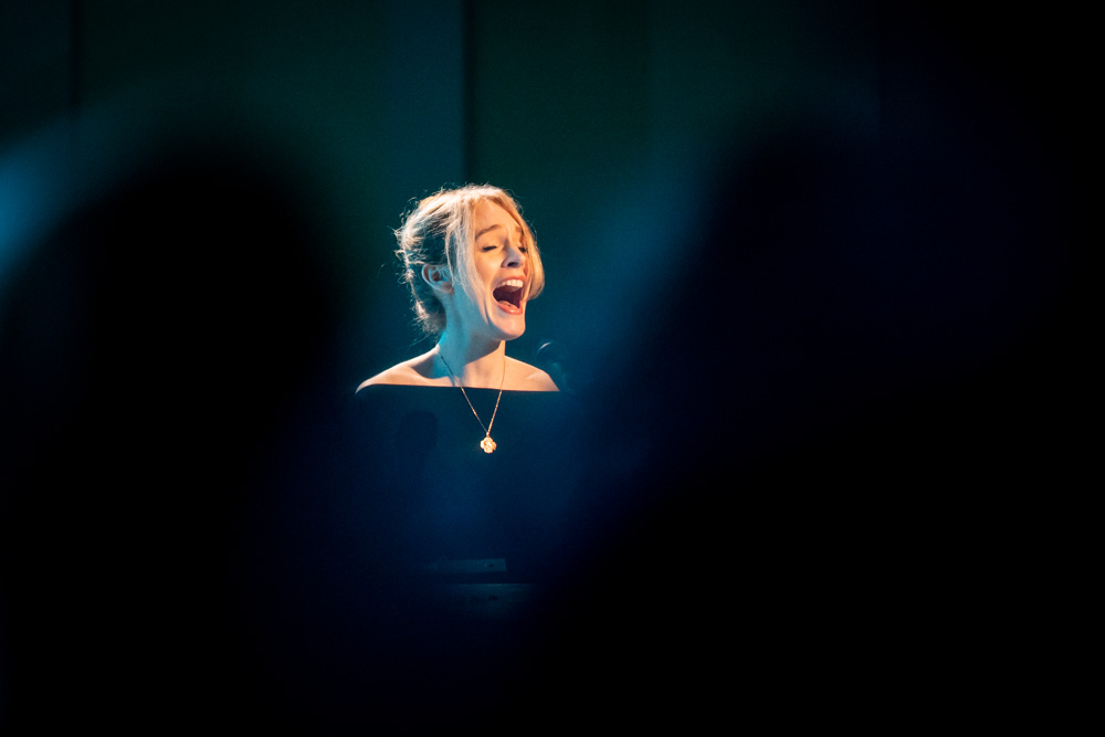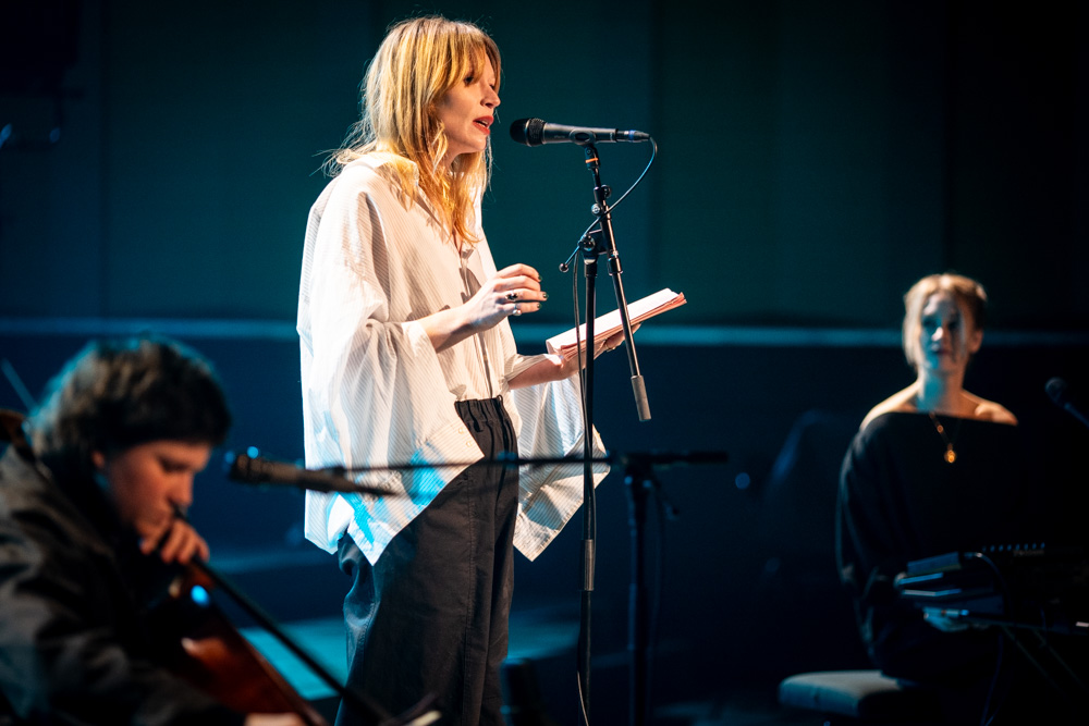 In de zaal duidelijk heel wat vrienden, familie en fans want de drie artiesten worden onder luid gejuich op het podium ontvangen. Centraal, als een engel met geknakte vleugels, Haerens die gedurende de 45 minuten durende voorstelling zal voorlezen uit eigen werk terwijl cello, synthgeluiden en gezang haar begeleiden.