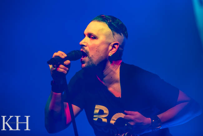 Ook al klinken de genres als darkwave, futurepop en vooral EBM die Blutengel vaak toegeëigend krijgt nogal zwaar, toch is de Blutengel-sound erg toegankelijk. We zijn zelf geen grote fan meer omdat ze nog weinig verrassen, en steeds opnieuw vertrekken vanuit hetzelfde concept, met een showplaatje dat afgelikt gerepeteerd lijkt. Toch kan niemand ontkennen dat dit een sterke show was. De drummer maakte wel indruk. Rechtstaand imposant en met overweldigende kracht. Demon Of Temptation, Disobedience,Wir Sind Das Licht … meeslepende beats en synths! Bij Erlöse Mich laat Pohl het publiek verlossend meezingen. Een echte frontman, die het publiek dicht bij zich neemt. Mooi.