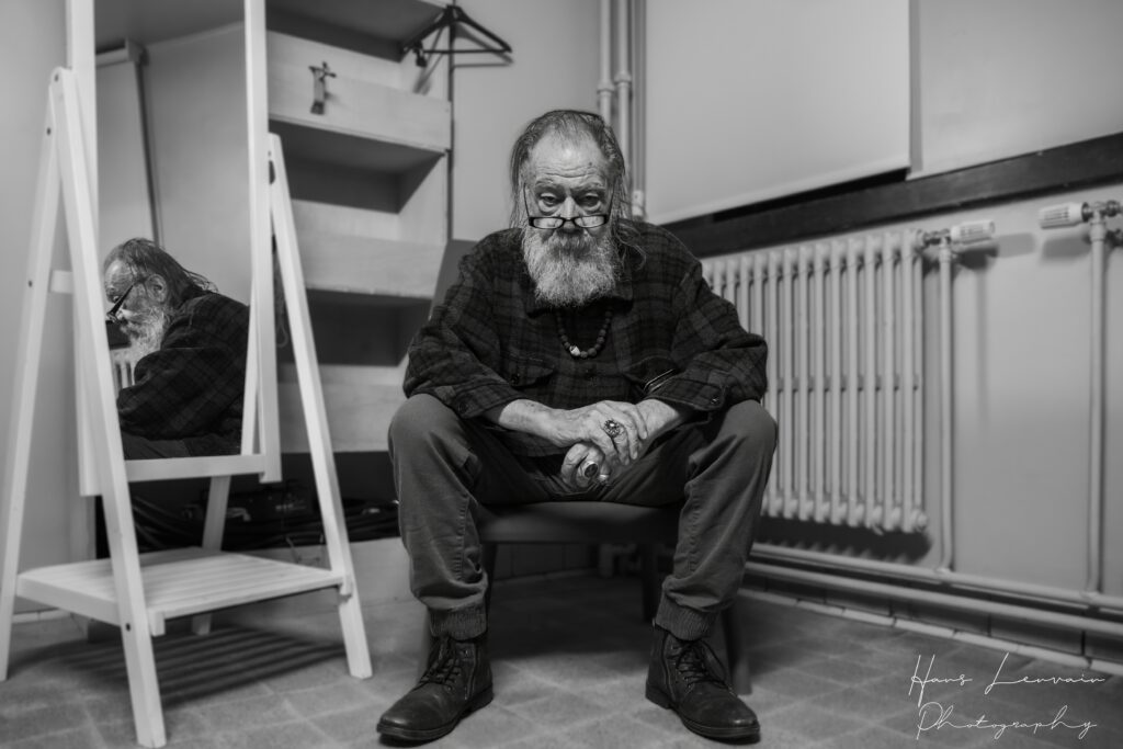 Hij heeft niets meer te bewijzen of te verdienen. Zijn pluimen staan al lang op zijn hoed en toch… En toch doet de man verder met wat hij graag doet en zal blijven doen: muziek maken. De ene keer op een omgedraaide bierbak ergens op een verdoken pleintje, de andere keer – zoals hier – zoals het écht hoort: in een mooie zaal met beschikking van een loge, toeters, bellen, een warme maaltijd en goed gevulde frigo.