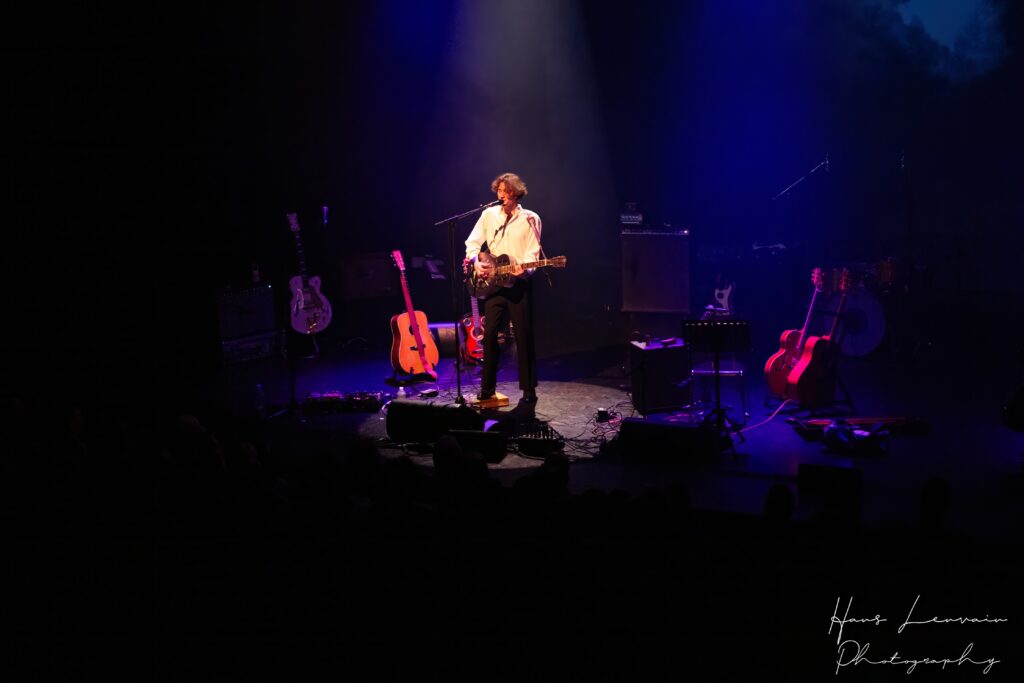 Hij tuurt in de zaal, weet niets anders uit te brengen dan ‘jah’ en plugt de jack in zijn gitaar. Met die ‘jah’ brengt hij het publiek meteen aan het lachen en op dat moment is iedereen klaar om uit zijn hand te eten.
