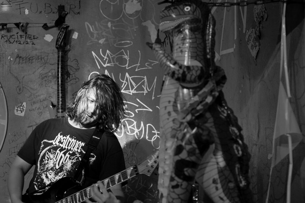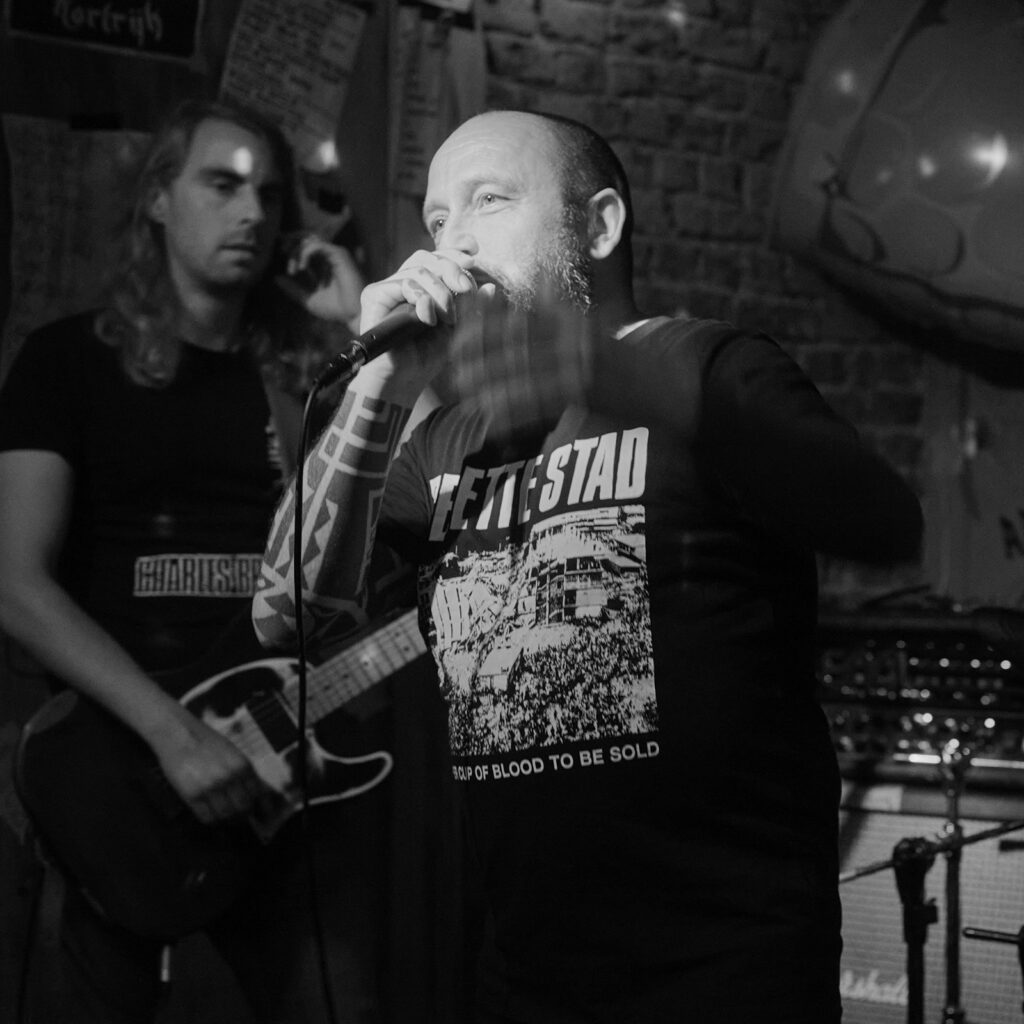 Gelukkig konden we een praatje slaan met de drummer van Travølta, die ook het kleine maar fijne Loner Cult bestiert. Travølta behoorde samen met Röt Stewart en Jodie Faster tot het rijtje bands waarvoor we de regen hadden getrotseerd, dus dat zou zeker goed komen, gezien ze zich ook moesten bewijzen tegenover onze jongste, die zin had in een stevige scheut hardcore, grind en powerviolence.
