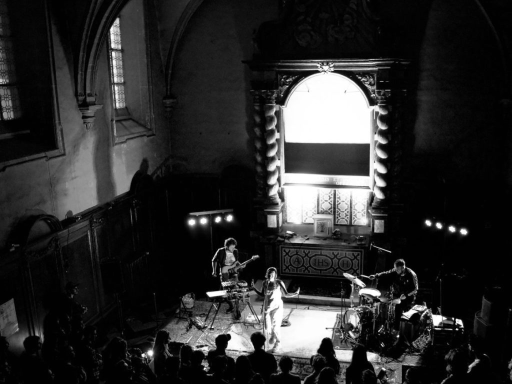 De kapel zit ondertussen goed vol voor de ster van de avond, de 20-jarige Hasseltse Louise alias Ruby Grace. De vergelijkingen qua stemgeluid met Amy Winehouse werden al dikwijls gemaakt en worden deze avond live alleen maar bevestigd. Qua muziekstijl zit ze mijlenver van de Britse legende. Dromerige electropop met een vleugje mystiek en dat wordt al bij aanvang duidelijk. Een donkere setting met enkel wat blauwe spots en een intro met onheilspellende synthbeat en dramatische soundeffecten. En dan de frisse verschijning van Ruby Grace met het witte haar in witte overal en witte baskets. Onmiddellijk valt op wat een jonge spring-in’t-veld de Hasseltse is. De PA-afregeling zit nog niet helemaal goed bij het openingsnummer. De zangeres is nauwelijks hoorbaar van waar wij staan en de backing tape toornt boven haar stem uit. Jammer. Muzikaal zit het poppy nummer met een catchy Dub beat zeker wel goed. Ook het tweede nummer zit er boenk op. Exotische R&B/triphop beats met funky geluidseffectjes en wat extra galm op de stem komen in deze kapel helemaal tot hun recht. De titel moeten we jullie spijtig genoeg schuldig blijven (Angel komt regelmatig terug in de tekst dus zou een goeie gok zijn). Qua bindteksten en interactie met het publiek beperkt het zich tot wat giechelende ‘enjoy’s’ en korte niet altijd even verstaanbare wistjedatjes .