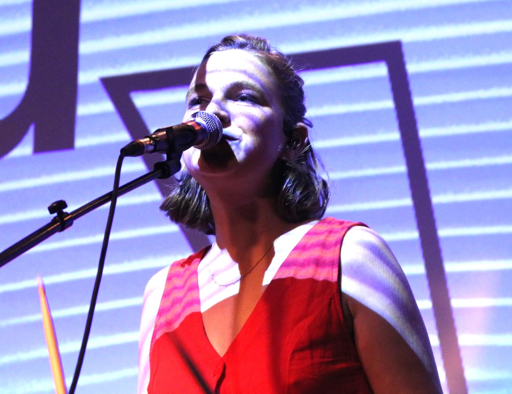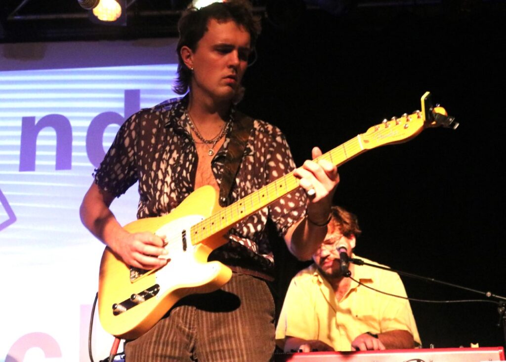 BLOND mocht de avond openen. De band bestaat uit Fien Van Der Aa, Linde Notenbaert en Caitlin Talbut die we kennen van Bluai, één van de winnaars van de vorig Sound Track editie. BLOND maakt humoristische elektropop in het Nederlands en komt in hun teksten soms met scherp uit de hoek. Ze zijn ook niet vies van een covertje van K3. Die cover lieten ze in Het Bos achterwege en we kregen een fijne set vol 80’s getinte synthpop waarin de dames bewezen dat ze alle drie kunnen zingen. Alleen is niet helemaal duidelijk waar het trio precies naartoe wil, is dit cabaret of draait het echt alleen om de muziek?