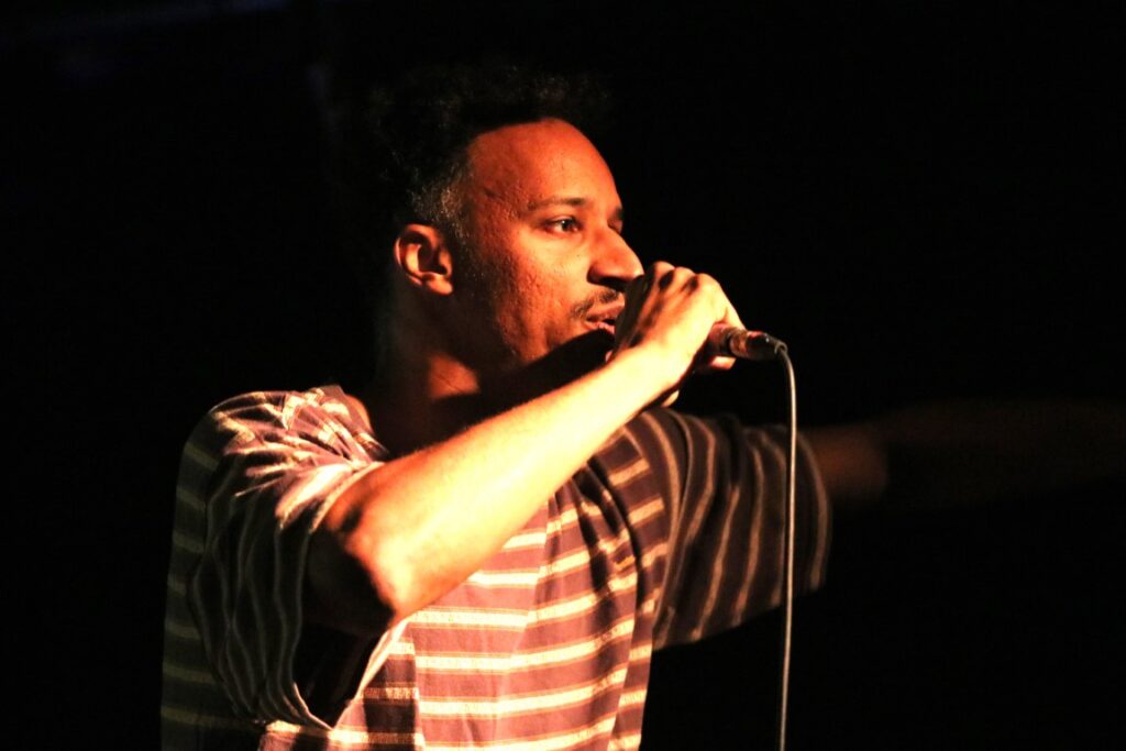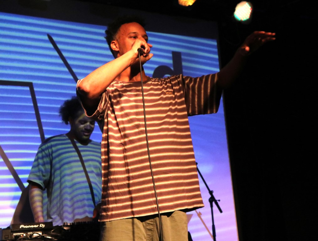 Hiphop is hip (zeker in Antwerpen) en dat merk je aan het grote aantal artiesten binnen dit genre op de affiche deze avond. De Antwerpse CAL! mixt afrotrap, dancehall en hiphop tot één geheel en dat met teksten in het Nederlands en het Turks met een Arabische vibe. Het was zijn eerste optreden ooit dus de man had wel wat zenuwen en wist niet goed hoe hij zich moest gedragen op het podium. Daar kwam nog bij dat de backingtrack ook de zang bevatte en we dus niet wisten of hij nu echt aan zingen was of niet. Het hielp ook niet dat hij zijn micro heel ver van zijn mond hield.